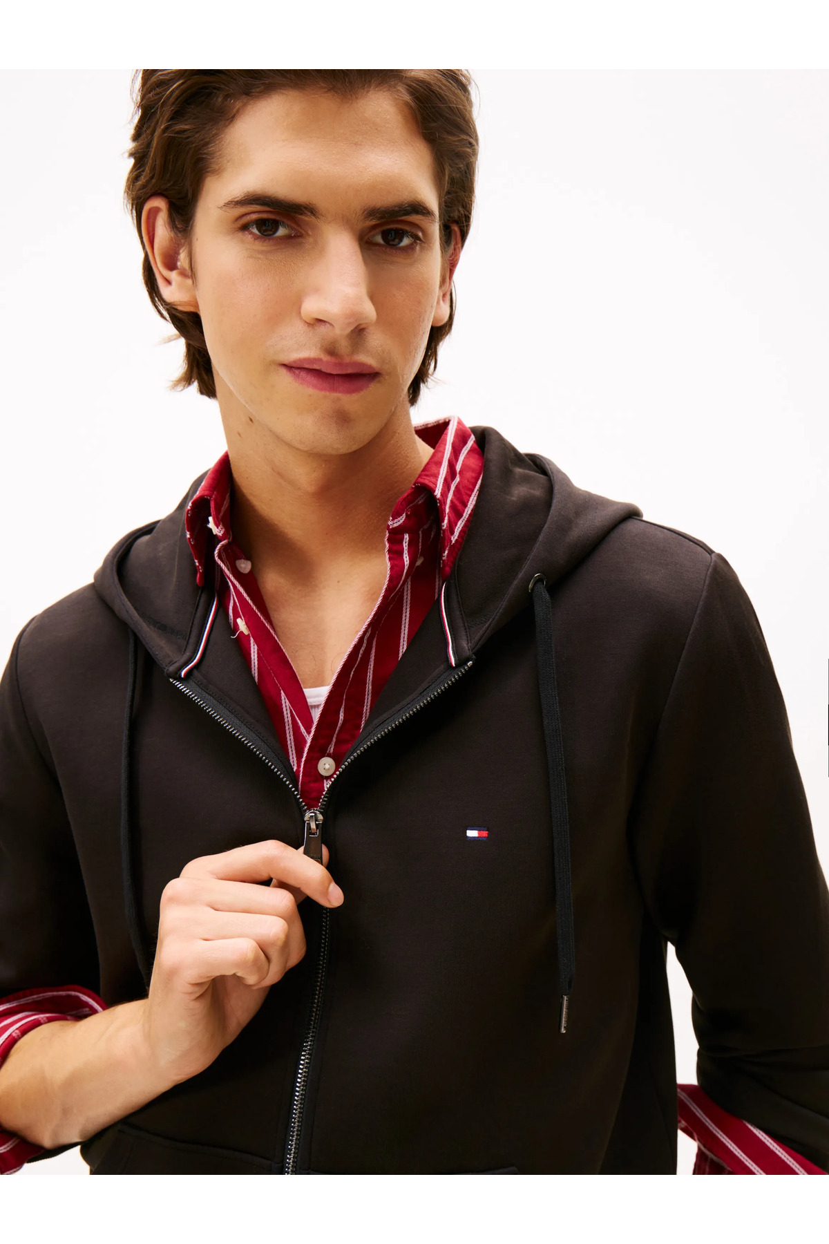 خرید اینترنتی سویشرت مردانه آستین بلند مشکی، کلاه دار، نخی، زیپ دار، سایز معمولی، MW0MW37243-BDS برند تامی هیلفیگر Tommy Hilfiger اورجینال از Wejaar نمایندگی و فروشگاه معتبر ترکیه