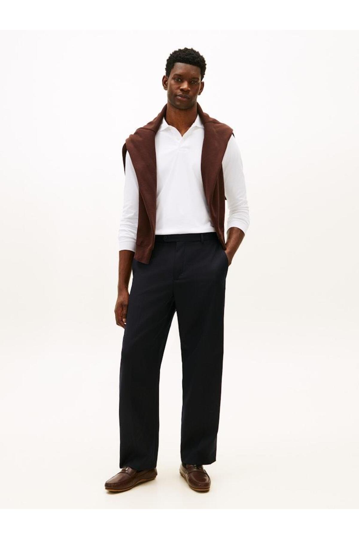 تیشرت یقه پلو مردانه تامی هیلفیگر آستین بلند راسته | Tommy Hilfiger MW0MW37317YBR