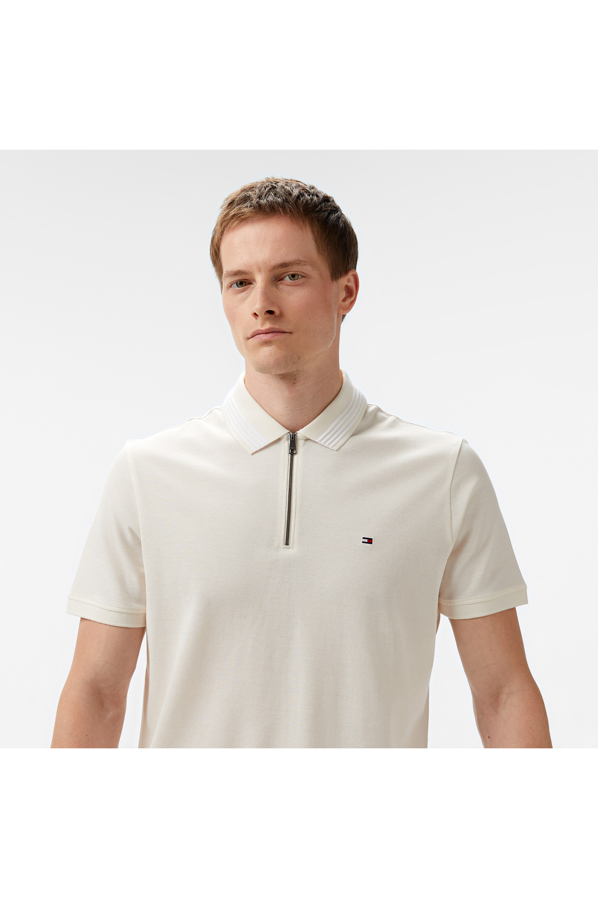 خرید اینترنتی تیشرت یقه گرد کرم مردانه Mercerised Pique برند تامی هیلفیگر Tommy Hilfiger اورجینال از Occasion نمایندگی ترکیه