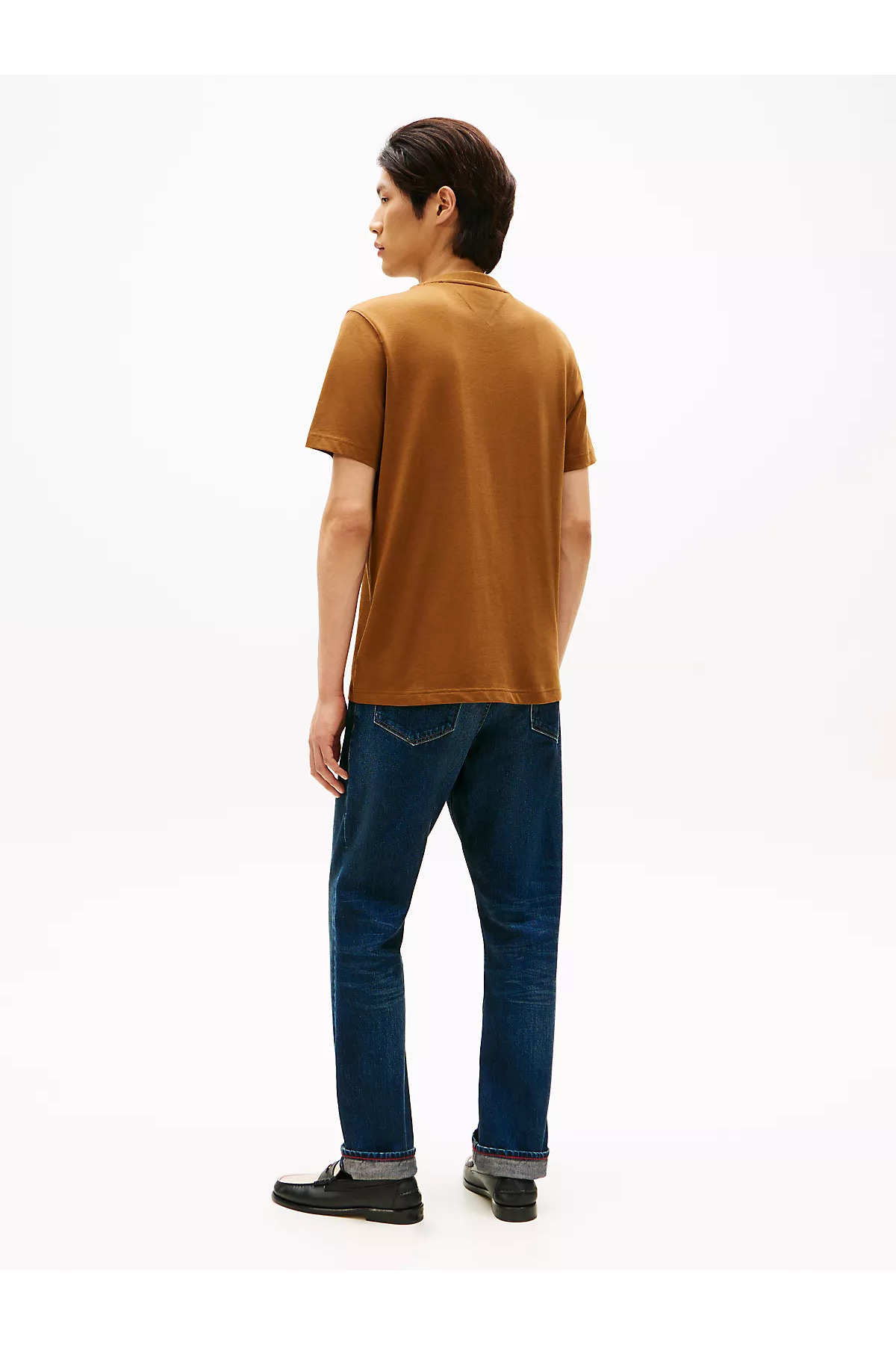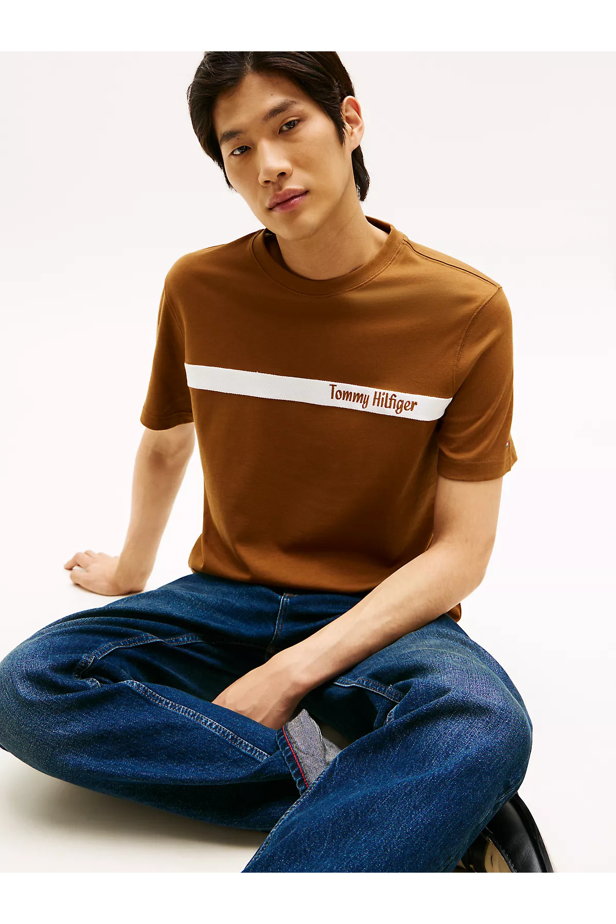 خرید اینترنتی تیشرت مردانه آستین کوتاه یقه گرد ۱۰۰٪ پنبهای طرح معمولی، قهوهای با لوگوی گلدوزی شده MW0MW4176 برند تامی هیلفیگر Tommy Hilfiger اورجینال از Wejaar نمایندگی ترکیه
