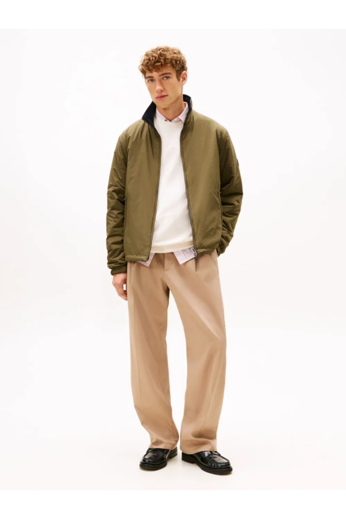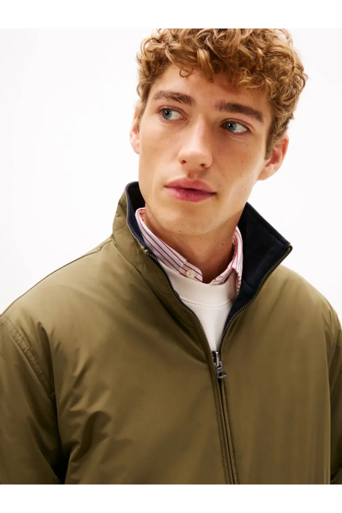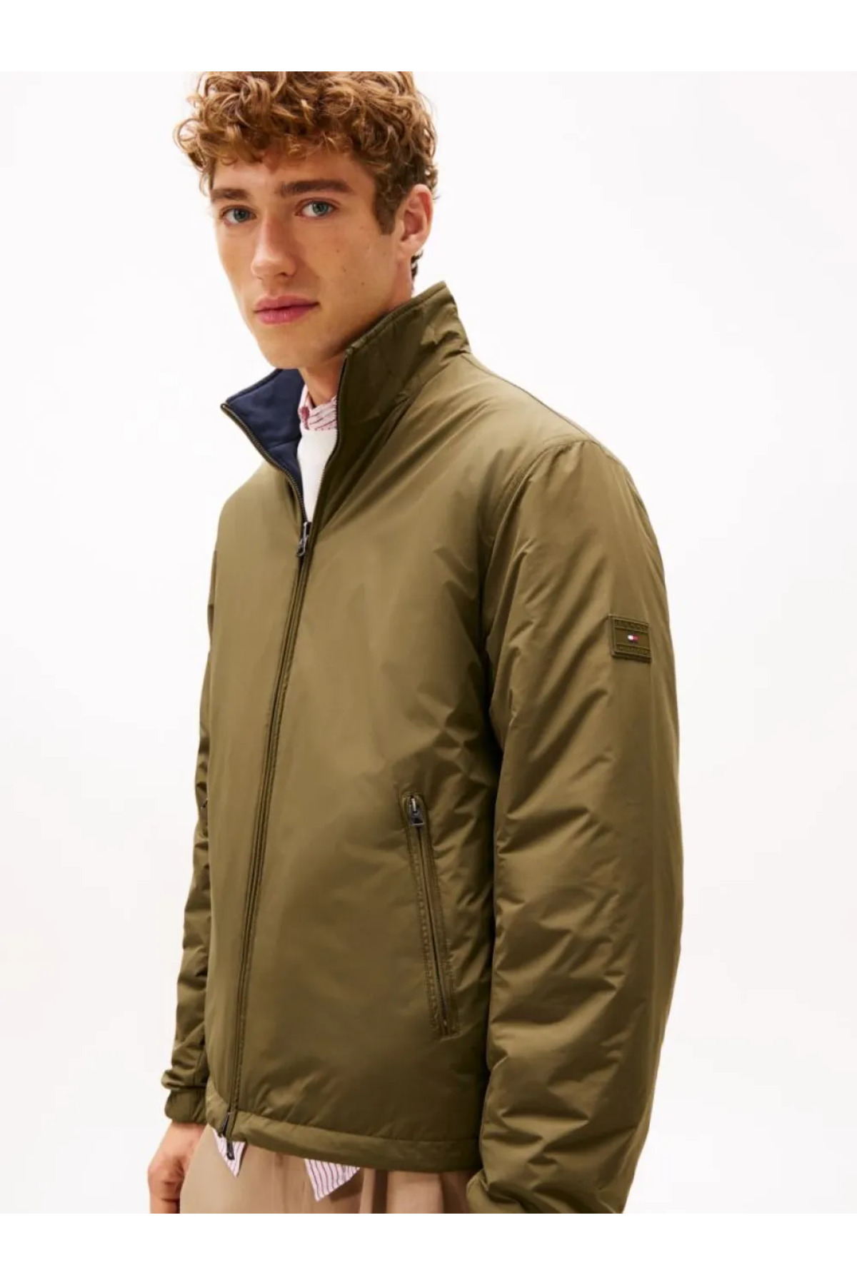 خرید اینترنتی کاپشن مردانه آستین بلند، یقه ایستاده دو طرفه، خاکی-سرمهای، سایز معمولی، MW0MW41862-RBN برند تامی هیلفیگر Tommy Hilfiger اورجینال از Wejaar نمایندگی ترکیه