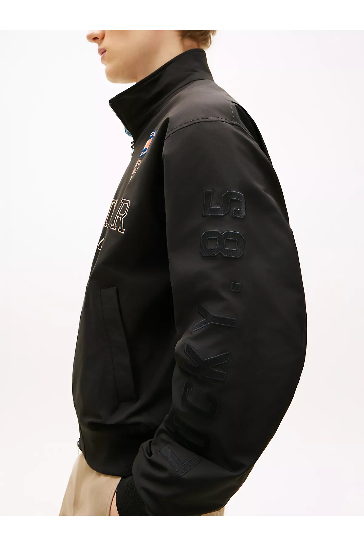خرید اینترنتی کاپشن مردانه چرم آستین بلند یقه برگردان طرح دار Hilfiger با حروف مشکی MW0MW42565-BDS برند تامی هیلفیگر Tommy Hilfiger اورجینال از Wejaar نمایندگی ترکیه