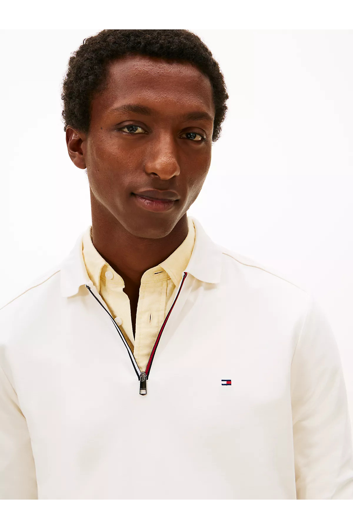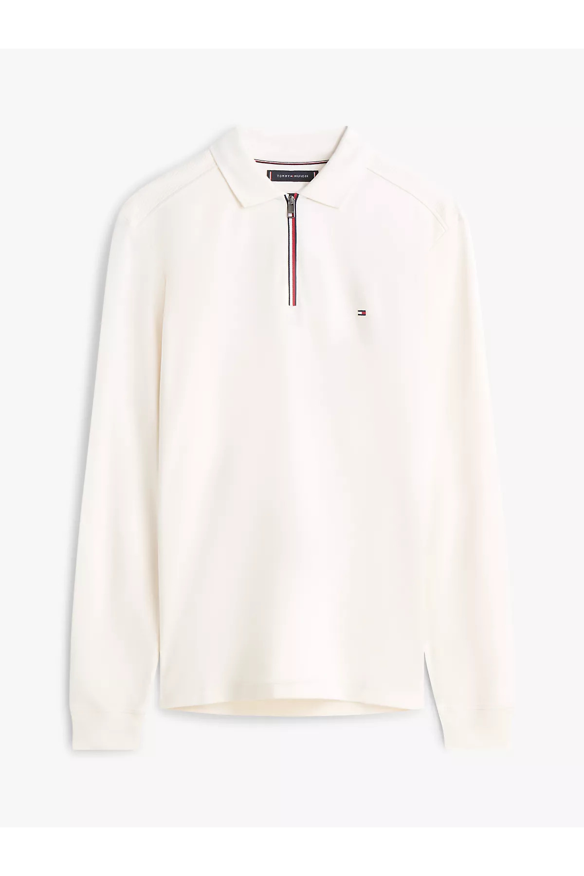 خرید اینترنتی تیشرت مردانه یقه گرد سفید آستین بلند نیم زیپ نخی سایز معمولی MW0MW42808-Z00 برند تامی هیلفیگر Tommy Hilfiger اورجینال از Wejaar نمایندگی ترکیه