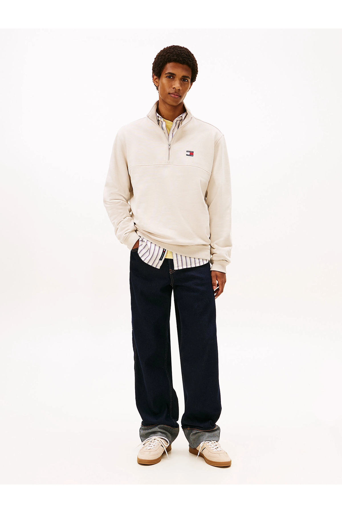 خرید اینترنتی سویشرت مردانه سفید TJM مدل Regular Fit با نشان و نیم زیپ DM0DM22344YBH برند تامی هیلفیگر Tommy Hilfiger اورجینال از LVS BRANDS نمایندگی و فروشگاه معتبر ترکیه