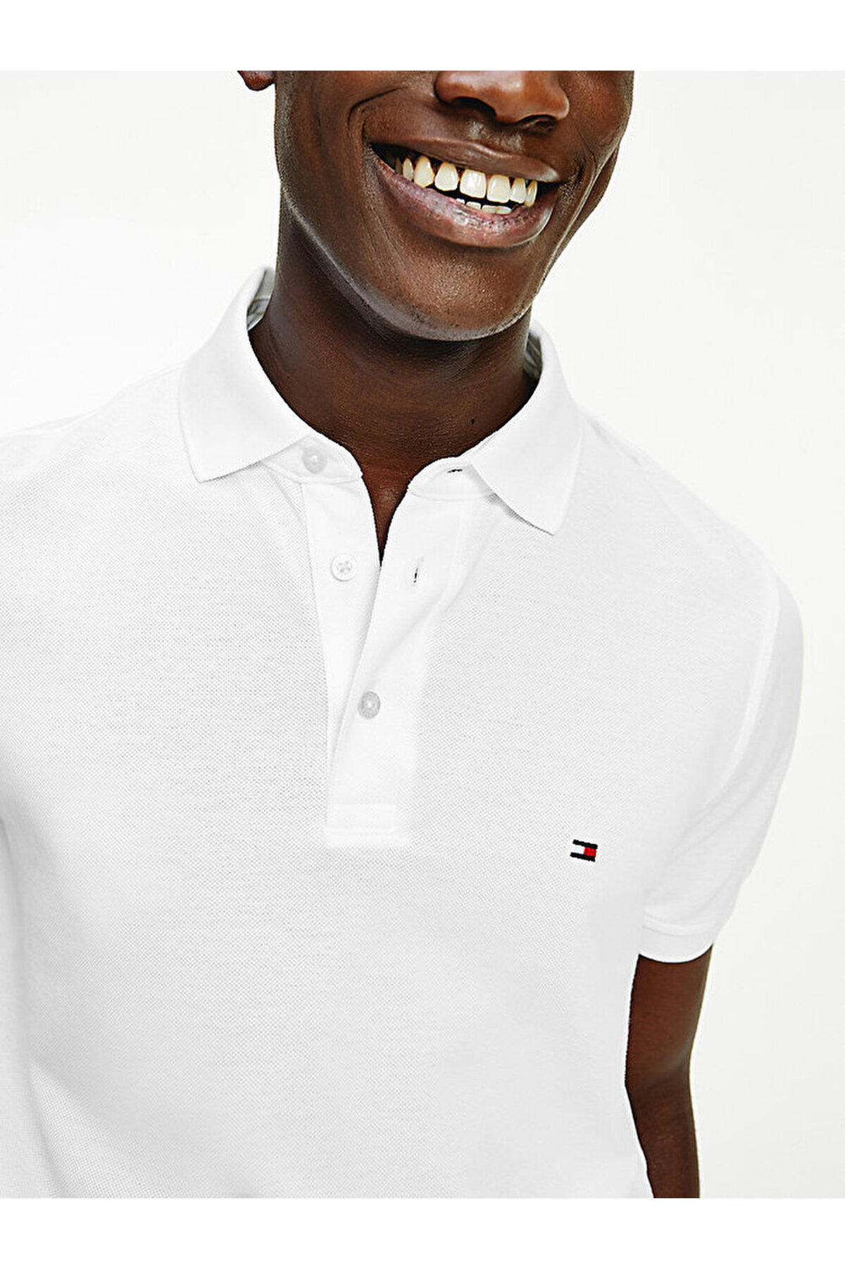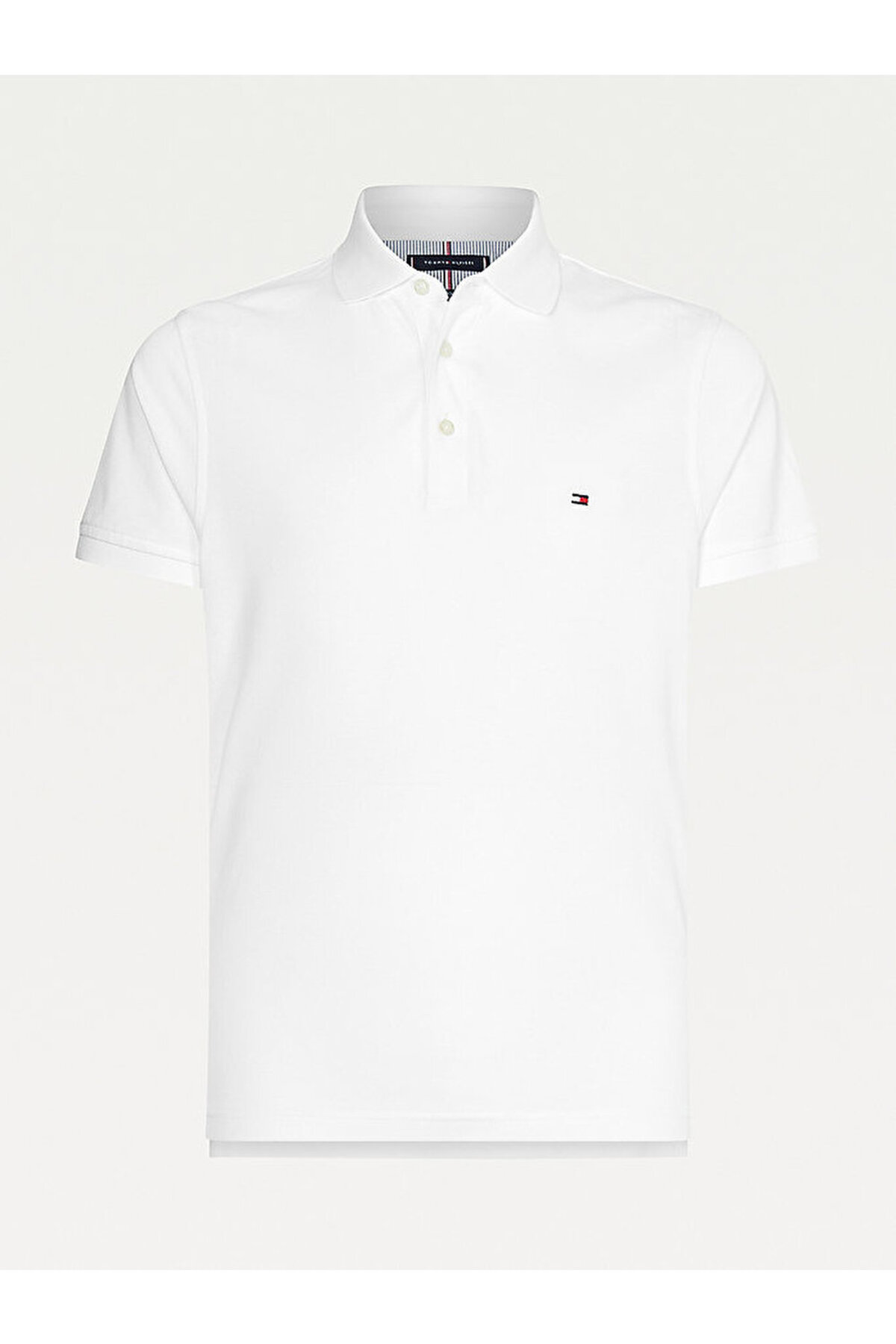 ویژگیهای محصول • پارچه پیکه پنبهای ارگانیک کشسان • یقه پولو • چاک دامن دو دکمه • برند تامی هیلفیگر • گلدوزی پرچم تامی هیلفیگر روی سینه