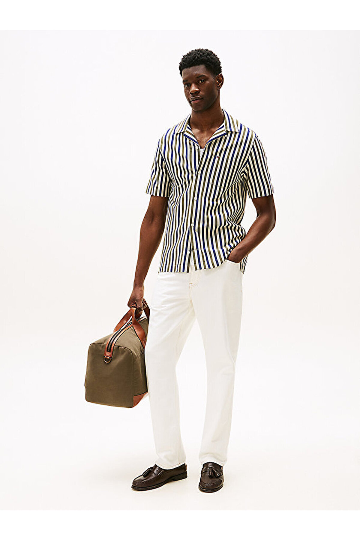 با الهام از سالی که تامی هیلفیگر برای اولین بار برند همنام خود را طراحی کرد، مجموعه ۱۹۸۵ ما، قطعات آرشیوی نمادین را از نو به تصویر میکشد. این پیراهن راه راه آستین کوتاه از پنبه خالص ساخته شده و دارای ساختاری بافتنی است که بافتی منحصر به فرد به مجموعه شما میبخشد. ویژگیهای محصول • پنبه خالص • مجموعه ۱۹۸۵ • نوارهای چند رنگ از بالا به پایین • یقه کوبایی • یک جیب سینه اپلیکه شده • نوار امضا در داخل یقه • برند تامی هیلفیگر • جزئیات گلدوزی پرچم تامی هیلفیگر روی جیب شکل و اندازه • اندازه معمولی • آستین کوتاه • مدل ما ۱.۸۶ متر قد دارد و سایز M را میپوشد. محتوا و مراقبت • ۱۰۰٪ پنبه کد محصول: MW0MW394580CD MW0MW394580CD مبدا: هند