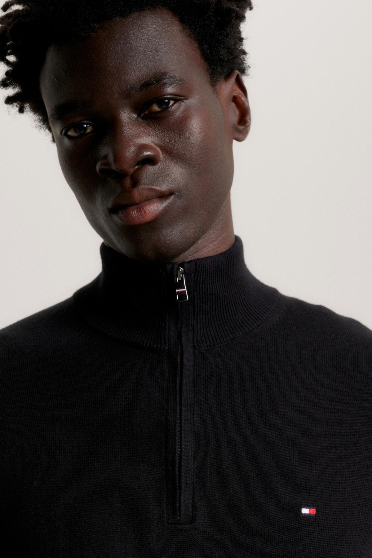 خرید اینترنتی ژاکت یقه گرد نیم زیپ طرح لوگو مردانه مشکی سایز M برند تامی هیلفیگر Tommy Hilfiger اورجینال از FashionHub نمایندگی و فروشگاه معتبر ترکیه