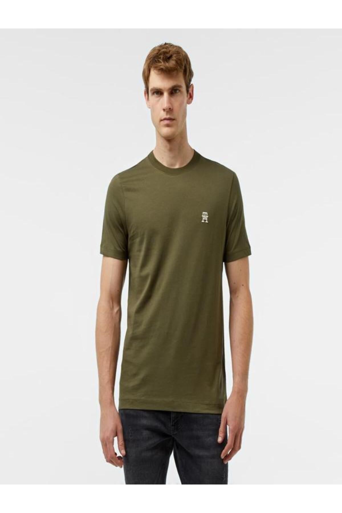 خرید اینترنتی تی‌شرت یقه گرد گلدوزی شده با مونوگرام TH برند تامی هیلفیگر Tommy Hilfiger اورجینال از ATLAS BRAND نمایندگی ترکیه