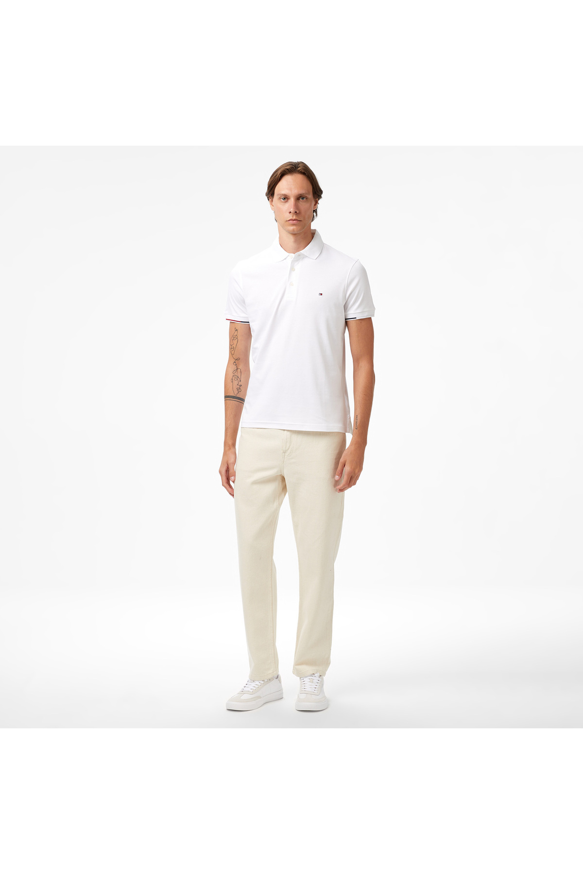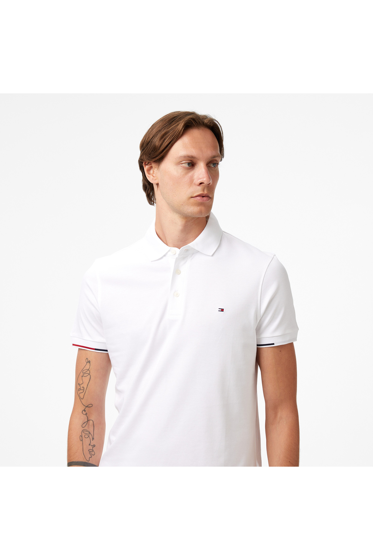 خرید اینترنتی تی شرت یقه دار سفید مردانه اینترلاک مدل Flagcuff Slim Fit برند تامی هیلفیگر Tommy Hilfiger اورجینال از Eren Perakende نمایندگی ترکیه