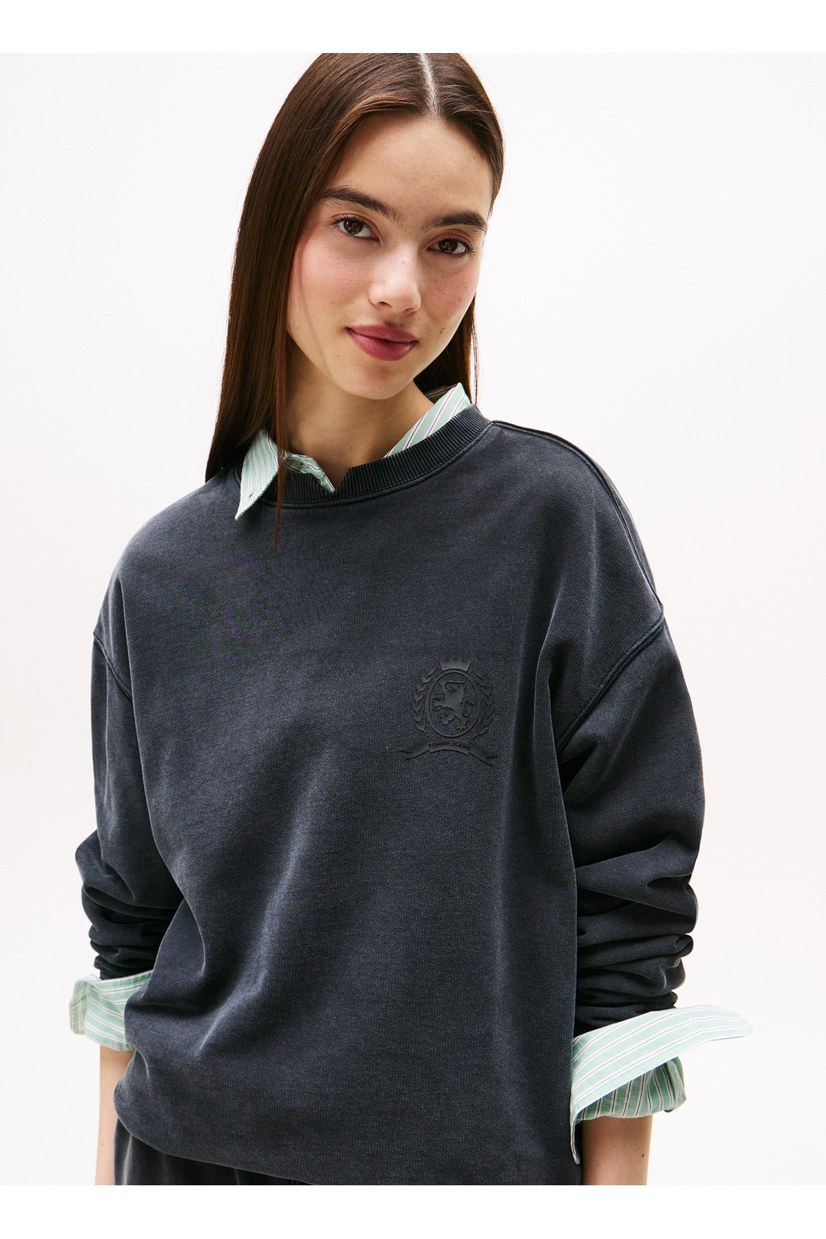 خرید اینترنتی سویشرت زنانه مشکی طرحدار یقه گرد DW0DW21586BDS برند تامی جینز Tommy Jeans اورجینال از BOYNER نمایندگی و فروشگاه معتبر ترکیه