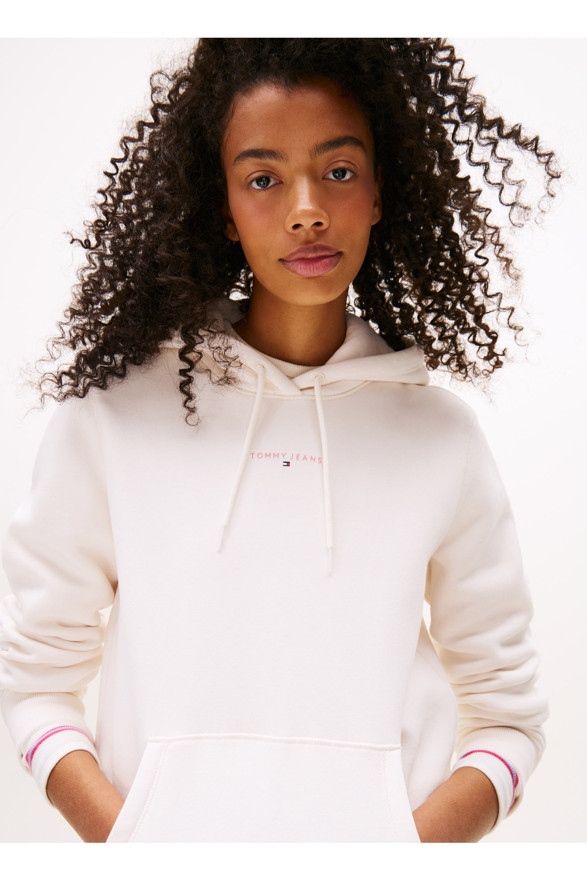 خرید اینترنتی سویشرت زنانه سفید چاپدار یقه کلاهدار DW0DW21963YBH برند تامی جینز Tommy Jeans اورجینال از BOYNER نمایندگی و فروشگاه معتبر ترکیه