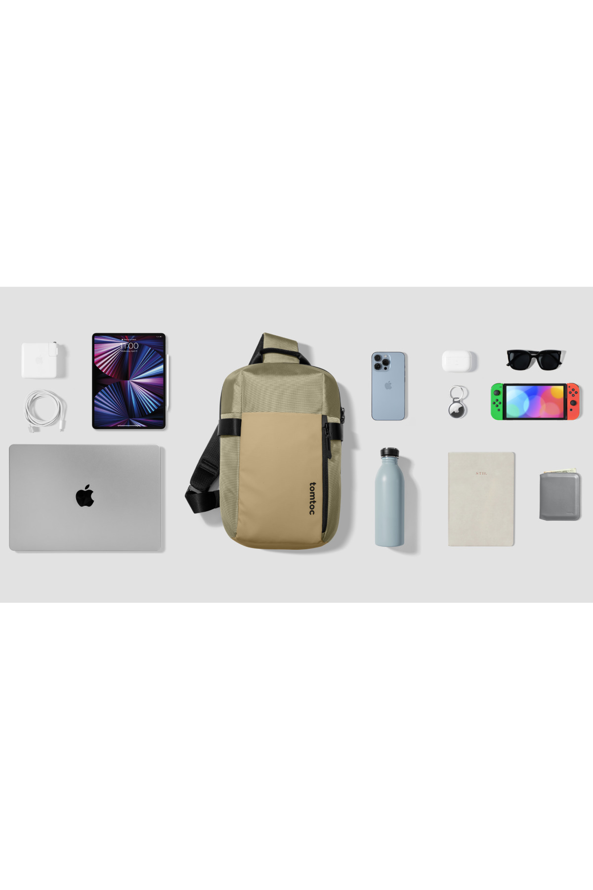 کیف رودوشی ضد آب سری Navigator مدل خاکی با حجم 14 اینچ/7 لیتر مدل T24M1K1 زنانه | Tomtoc T24-14