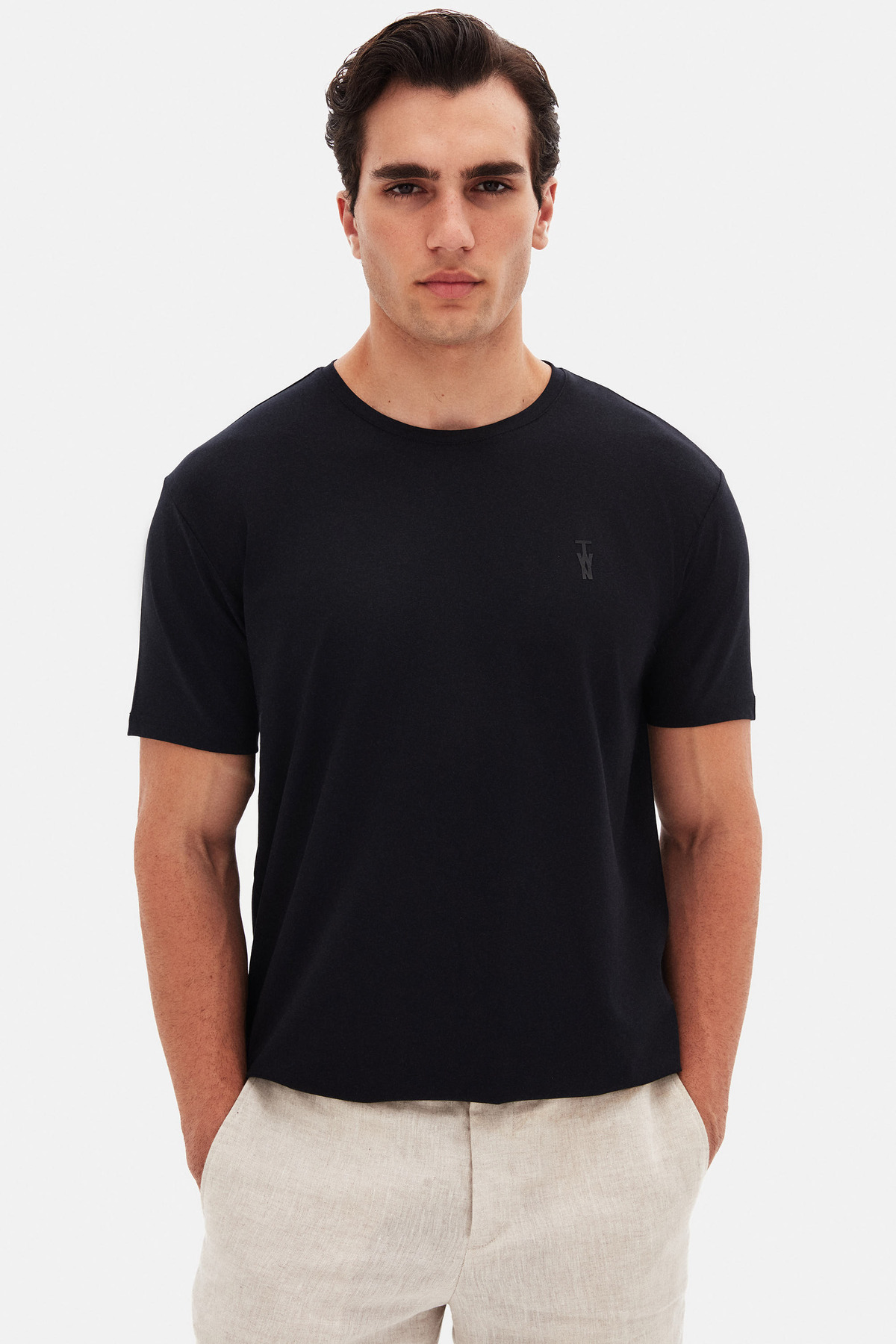 خرید اینترنتی تی شرت طرح دار برجسته مشکی ساده اسلیم فیت برند TWN اورجینال از DS DAMAT نمایندگی ترکیه