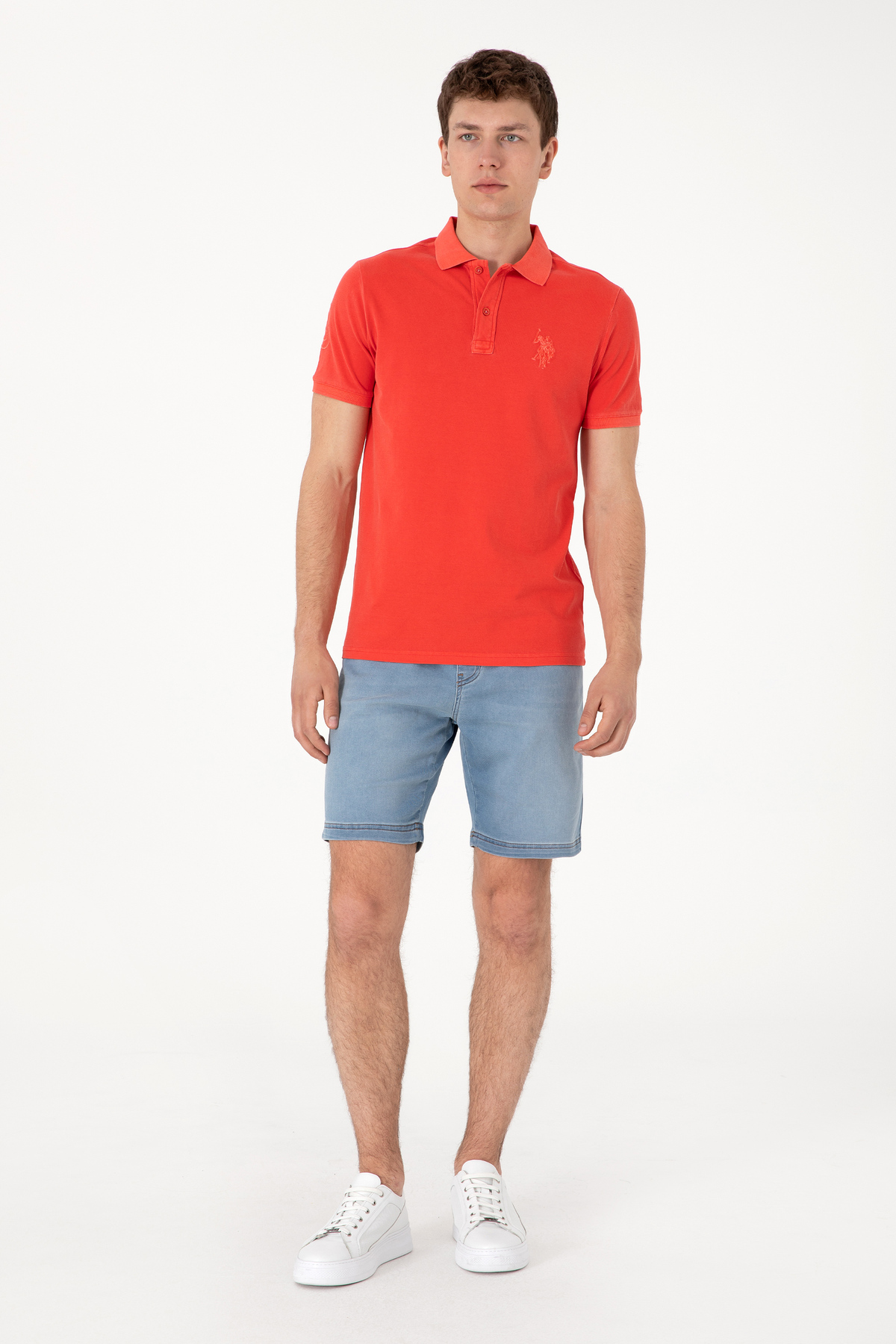 خرید اینترنتی تیشرت مردانه یقه پولو اسلیم فیت قرمز طرح ساده شسته شده کد ۵۰۲۹۸۰۵۳-VR213 برند یو اس پولو U.S. Polo Assn. اورجینال از U.S. Polo Assn. نمایندگی ترکیه