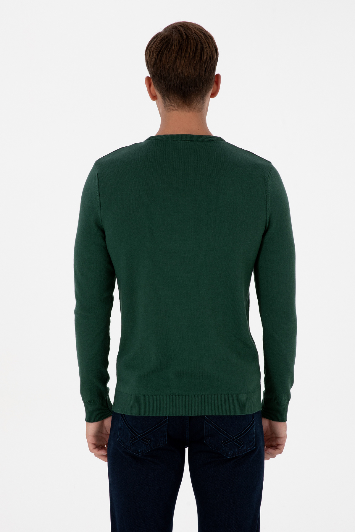 خرید اینترنتی پلیور مردانه یقه گرد اسلیم فیت، رنگ سبز تیره، کد ۵۰۳۰۷۷۷۹-VR۰۷۹ برند یو اس پولو U.S. Polo Assn. اورجینال از AYSİMONLİNE نمایندگی و فروشگاه معتبر ترکیه