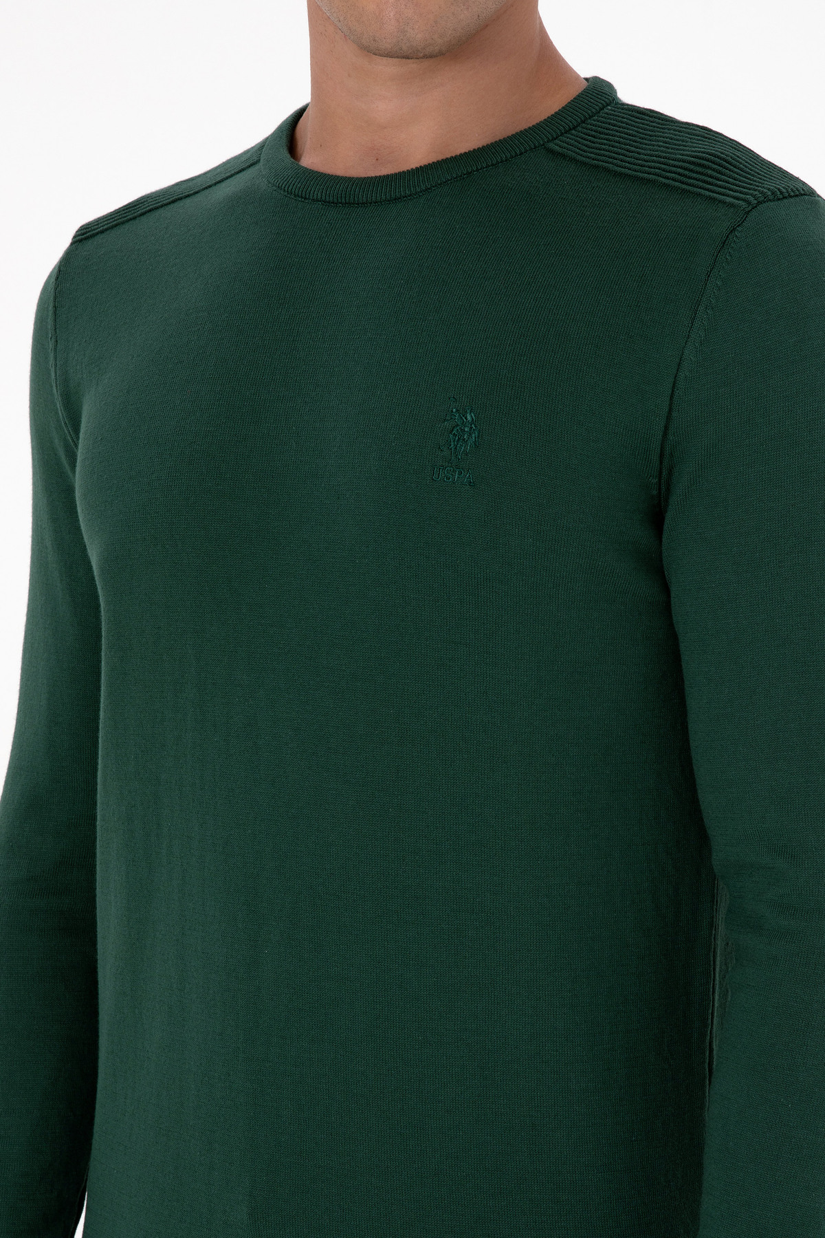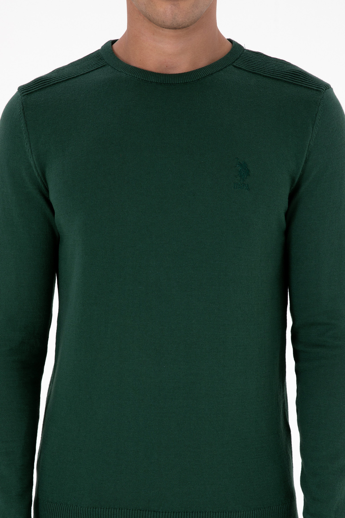 خرید اینترنتی پلیور مردانه یقه گرد اسلیم فیت، رنگ سبز تیره، کد ۵۰۳۰۷۷۷۹-VR۰۷۹ برند یو اس پولو U.S. Polo Assn. اورجینال از AYSİMONLİNE نمایندگی ترکیه