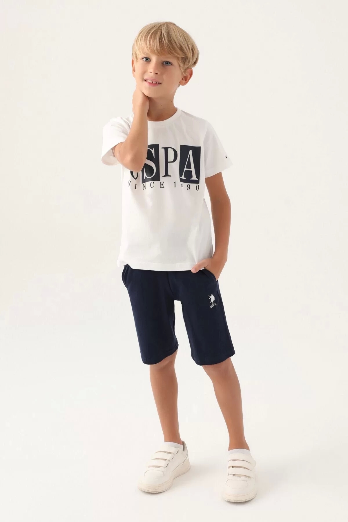 ست برمودای پسرانه پنبه‌ای مدل Written Cream دارای مجوز پسرانه یو اس پولو فاق نرمال آستین استاندارد راسته | U.S. Polo Assn. 158558_117575