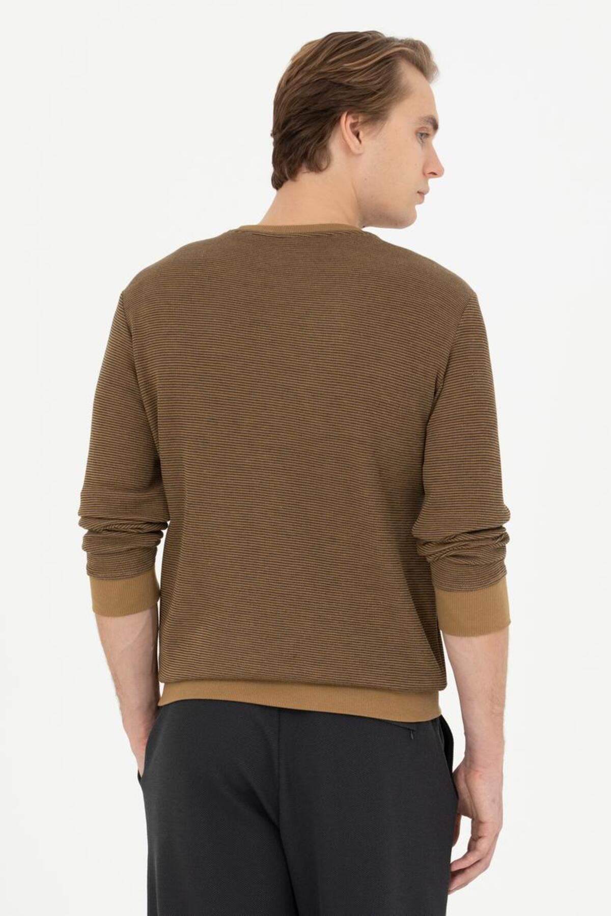 خرید اینترنتی سویشرت خاکی یقه گرد طرح مینیمالیستی مردانه برند یو اس پولو U.S. Polo Assn. اورجینال از Nehrin Style نمایندگی و فروشگاه معتبر ترکیه