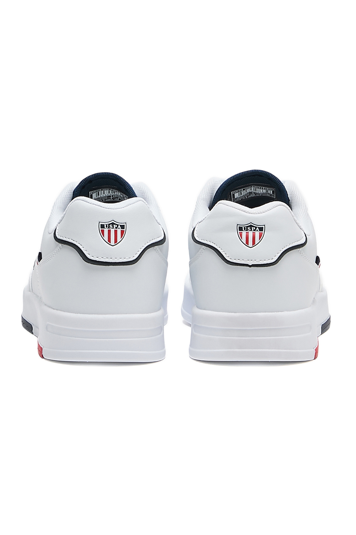 خرید اینترنتی کفش کتانی مردانه پاشنه کوتاه سفید – سبک، طراحی مینیمالیستی با تزئینات قرمز و آبی برند یو اس پولو U.S. Polo Assn. اورجینال از Sporline نمایندگی ترکیه