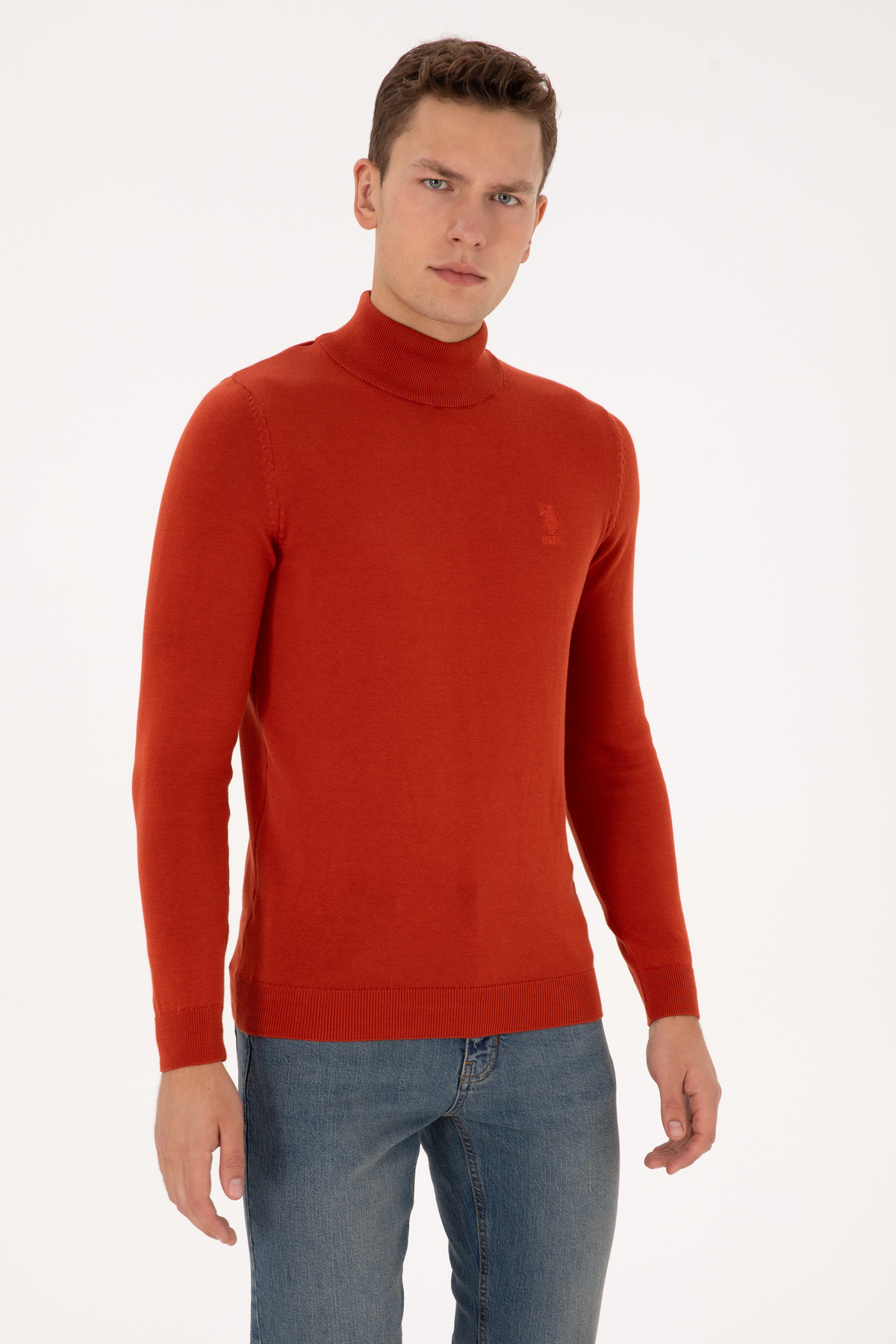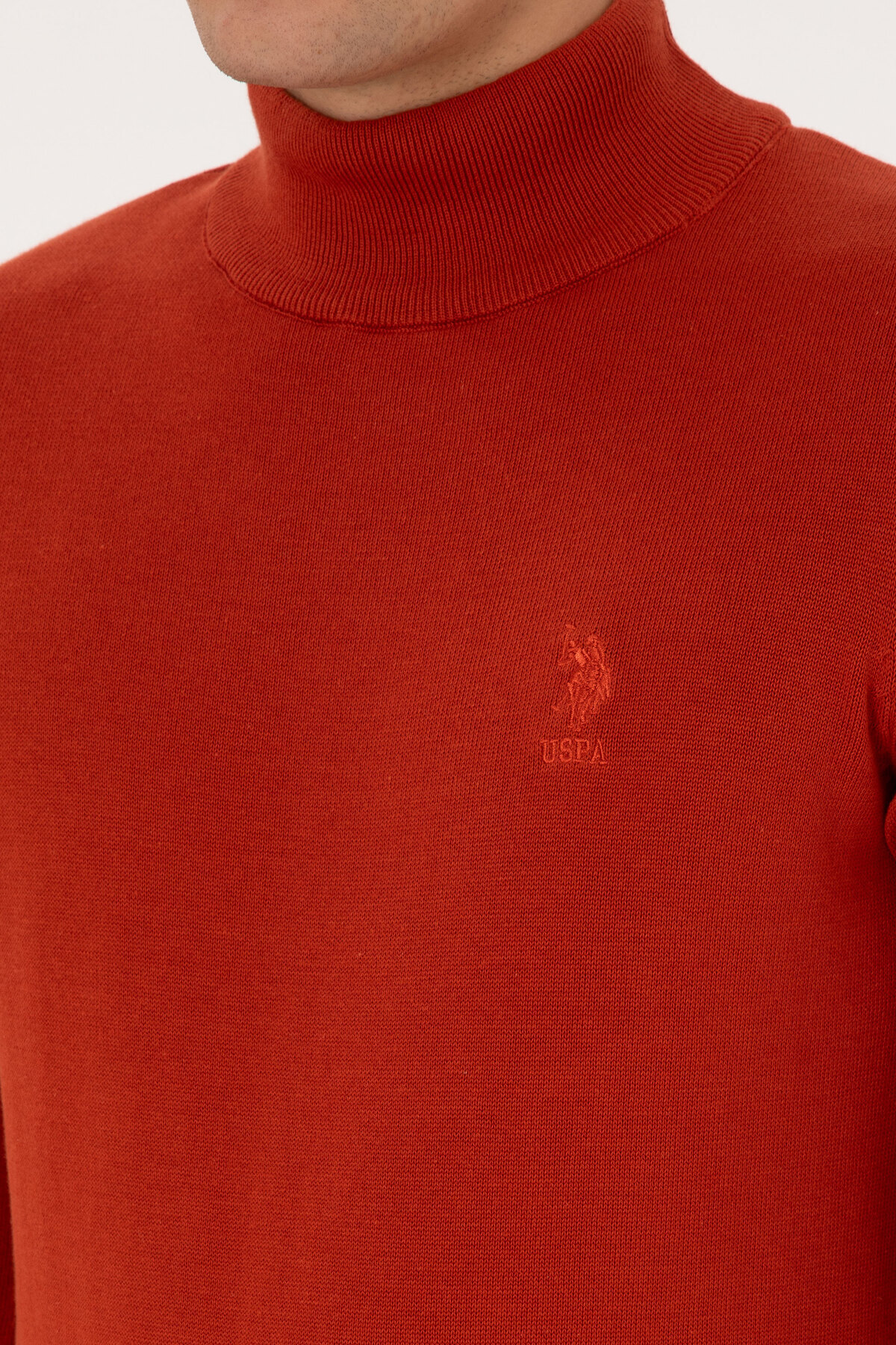 خرید اینترنتی پلیور مردانه یقه اسکی ساده اسلیم فیت به رنگ قرمز آجری کد ۵۰۳۰۷۷۸۳-VR۰۳۱ برند یو اس پولو U.S. Polo Assn. اورجینال از YağmurGiyim نمایندگی ترکیه