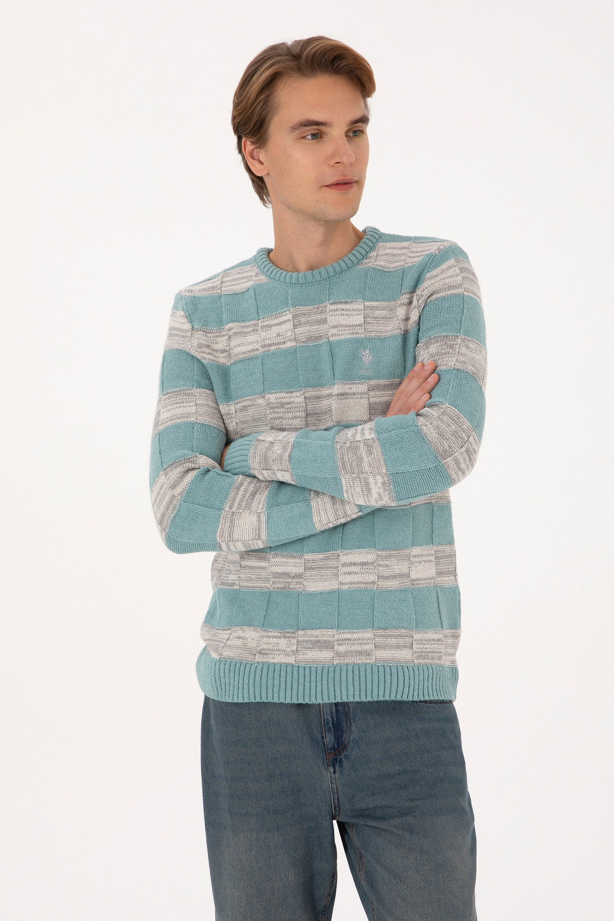 خرید اینترنتی ژاکت مردانه یقه گرد معمولی فیت به رنگ نعنایی 50307829-VR152 برند یو اس پولو U.S. Polo Assn. اورجینال از TrendMood نمایندگی ترکیه