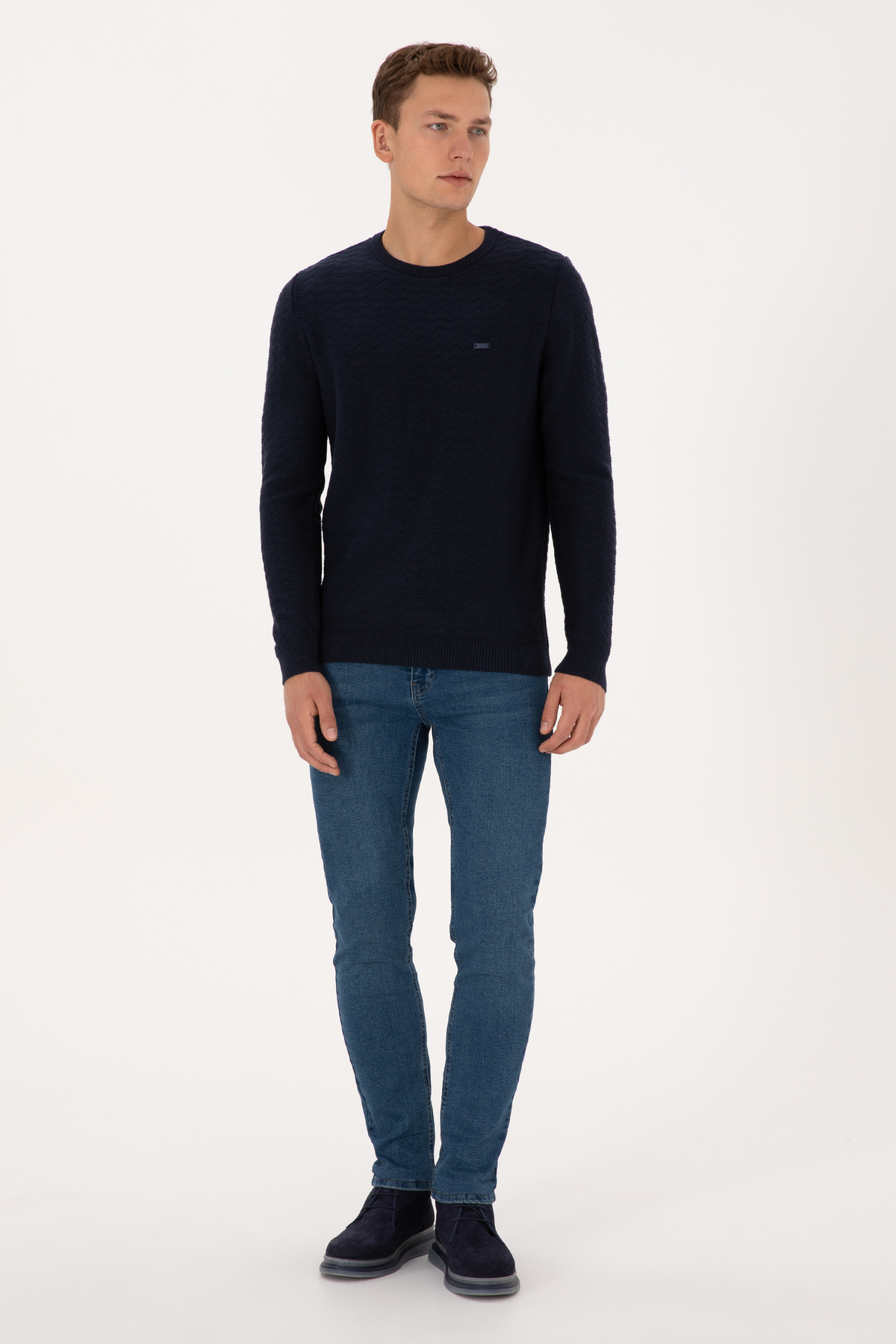 خرید اینترنتی پلیور مردانه طرحدار یقه گرد اسلیم فیت سرمهای کد ۵۰۳۰۸۲۵۱-VR033 برند یو اس پولو U.S. Polo Assn. اورجینال از YağmurGiyim نمایندگی ترکیه