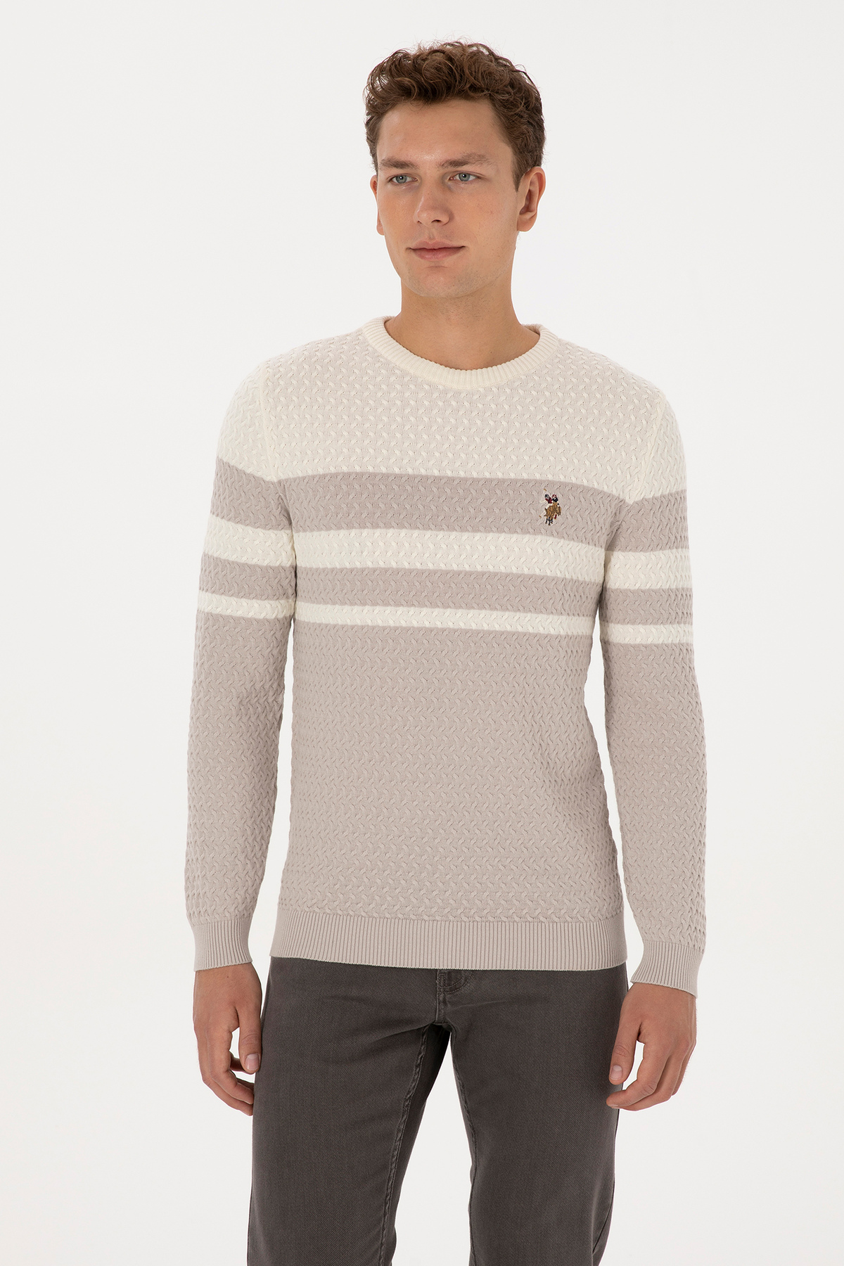 خرید اینترنتی پلیور مردانه یقه گرد طرح سنگ اسلیم فیت کد ۵۰۳۰۸۴۶۰-VR۰۴۹ برند یو اس پولو U.S. Polo Assn. اورجینال از KZY GİYİM نمایندگی ترکیه