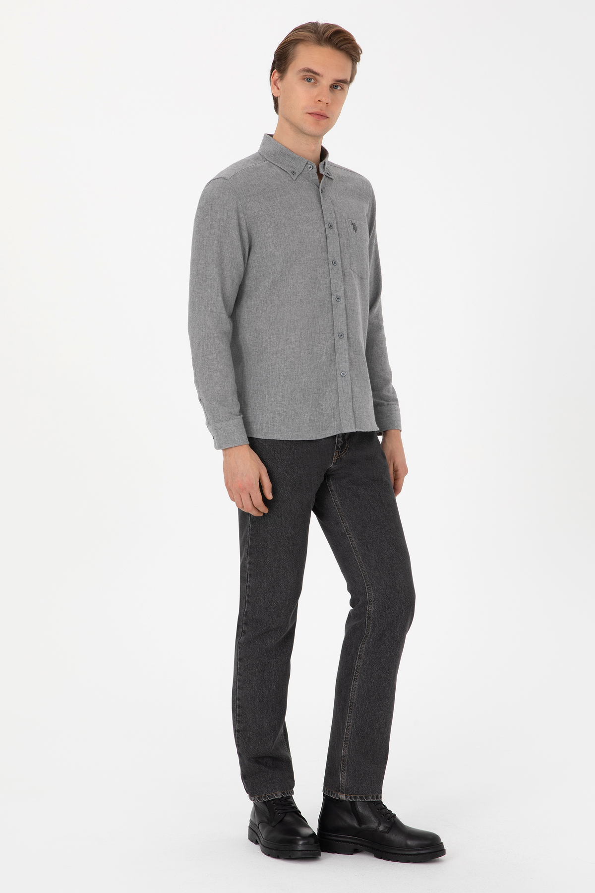 خرید اینترنتی پیراهن مردانه آستین بلند خاکستری 50308596-VR024 برند یو اس پولو U.S. Polo Assn. اورجینال از U.S. Polo Assn. نمایندگی و فروشگاه معتبر ترکیه
