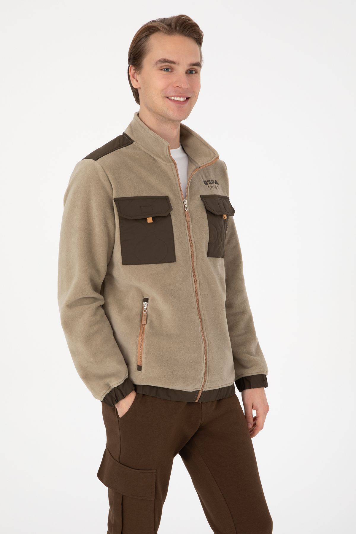 خرید اینترنتی ژاکت بافتنی مردانه مدل معمولی، زیپدار خاکی روشن، کد ۵۰۳۰۹۹۷۹-VR183 برند یو اس پولو U.S. Polo Assn. اورجینال از U.S. Polo Assn. نمایندگی و فروشگاه معتبر ترکیه