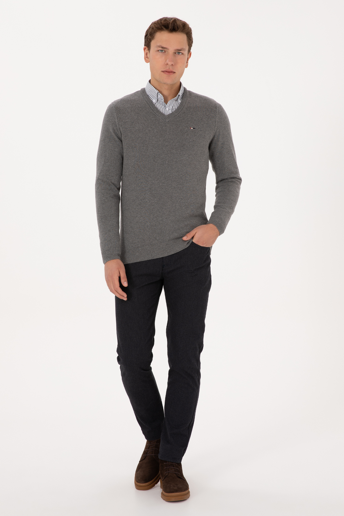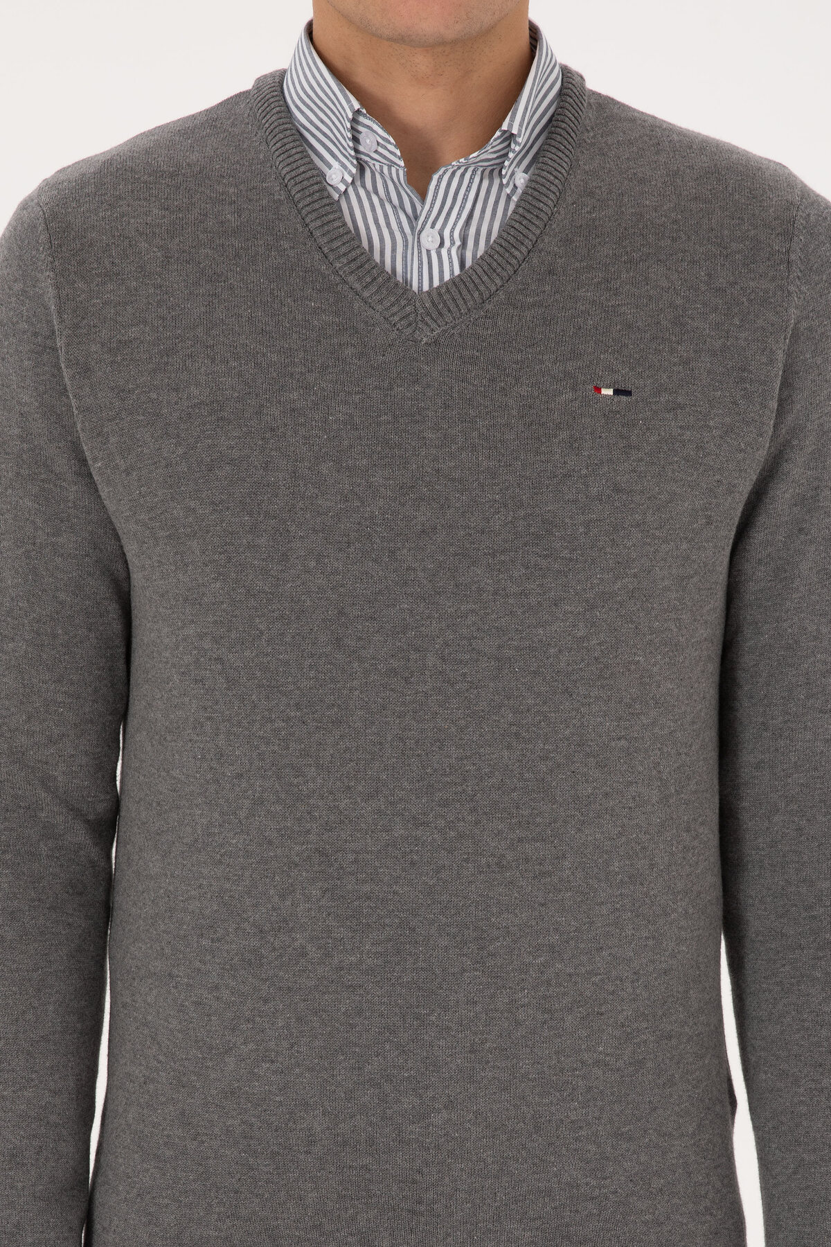 خرید اینترنتی ژاکت مردانه اسلیم فیت یقه هفت، خاکستری ملانژ، مدل پایه 50313668-VR086 برند یو اس پولو U.S. Polo Assn. اورجینال از PAMİRGİYİM نمایندگی ترکیه