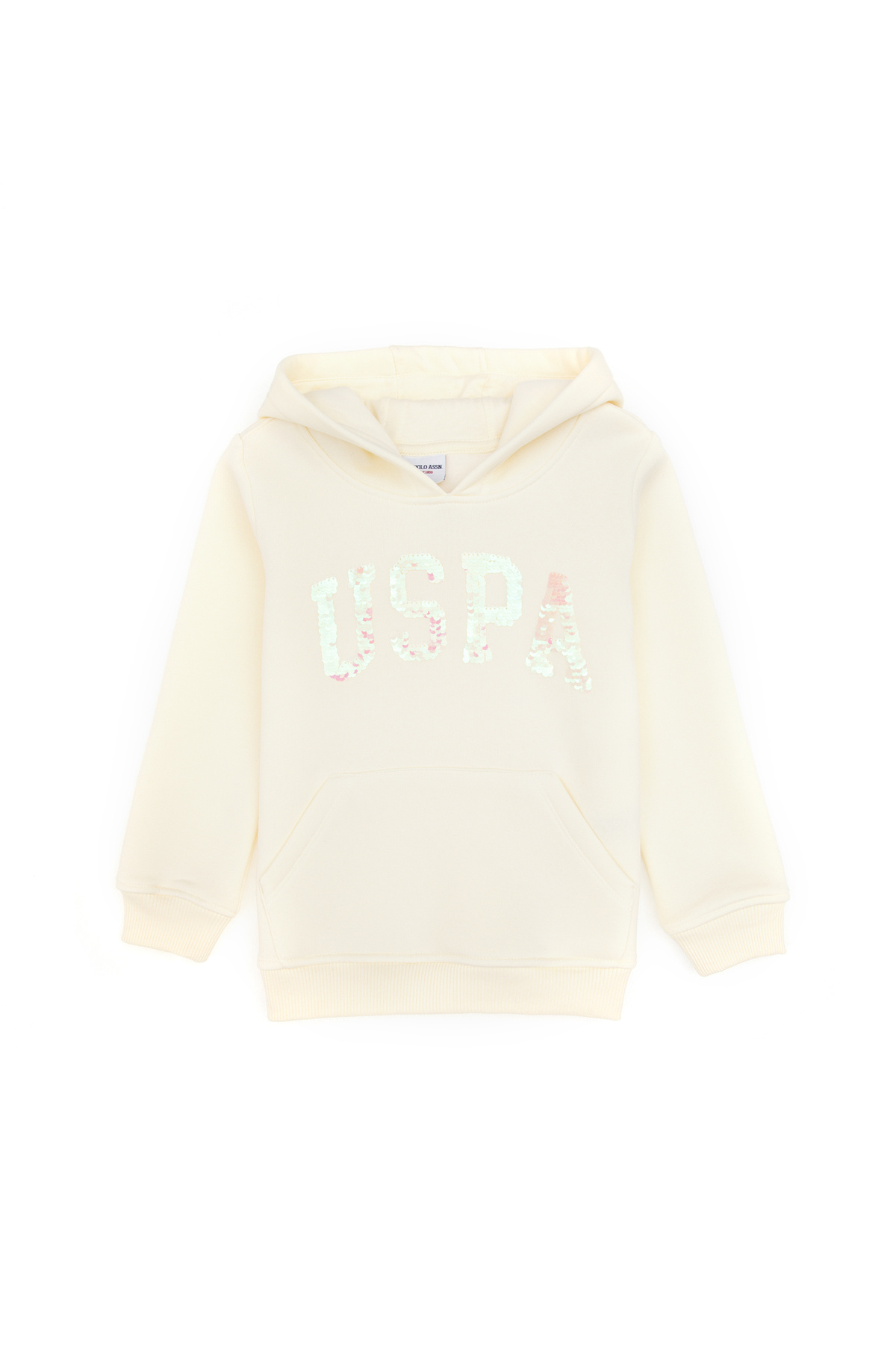خرید اینترنتی سویشرت دخترانه کلاه دار طرح برجسته پولک دوزی شده کرم رنگ، کد ۵۰۳۱۴۲۵۷-VR256 برند یو اس پولو U.S. Polo Assn. اورجینال از U.S. Polo Assn. نمایندگی ترکیه