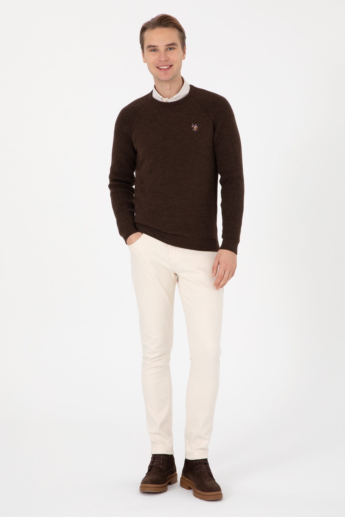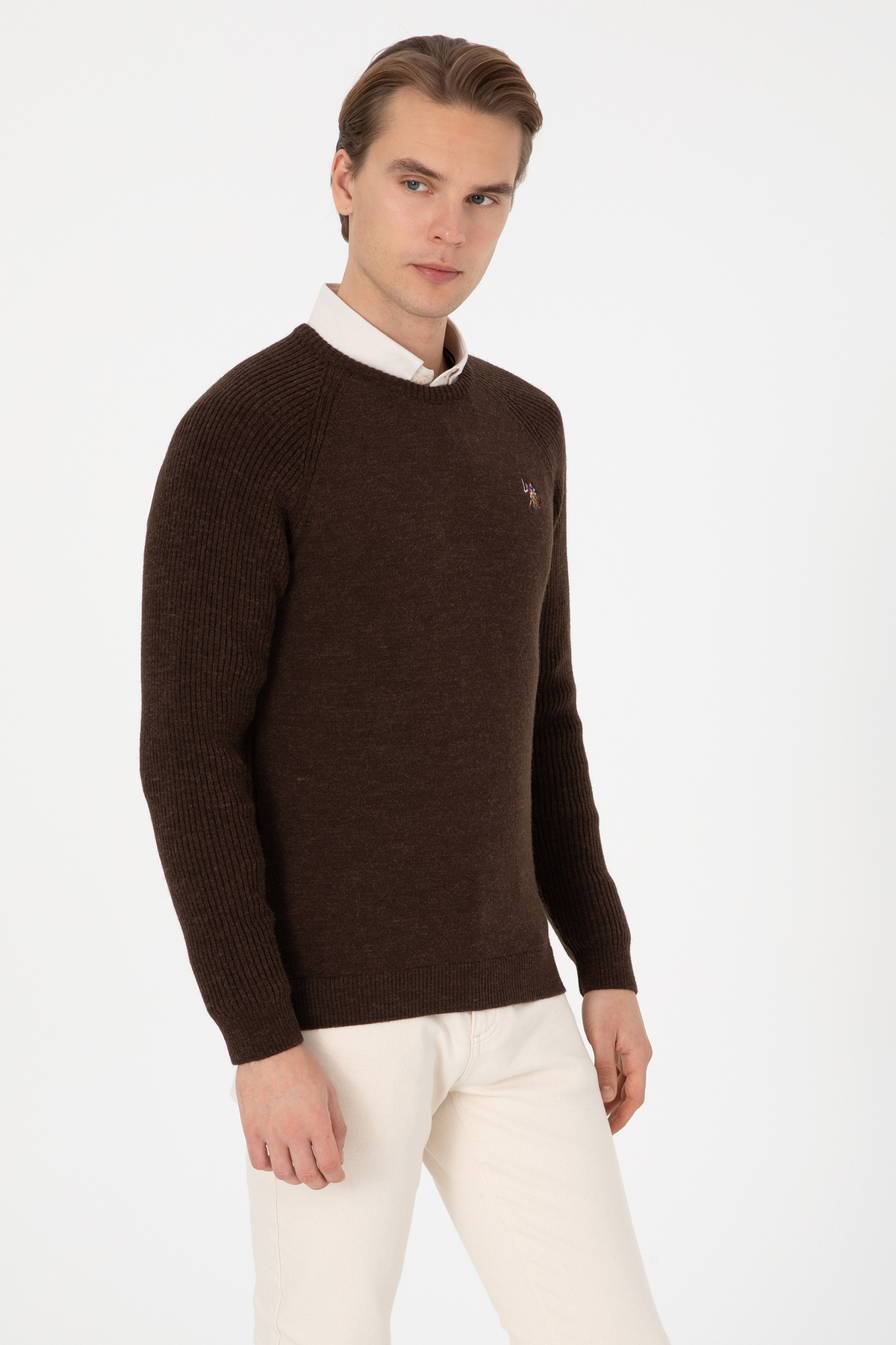 خرید اینترنتی پلیور مردانه یقه گرد قهوهای سایز معمولی 50314983-VR029 برند یو اس پولو U.S. Polo Assn. اورجینال از U.S. Polo Assn. نمایندگی ترکیه