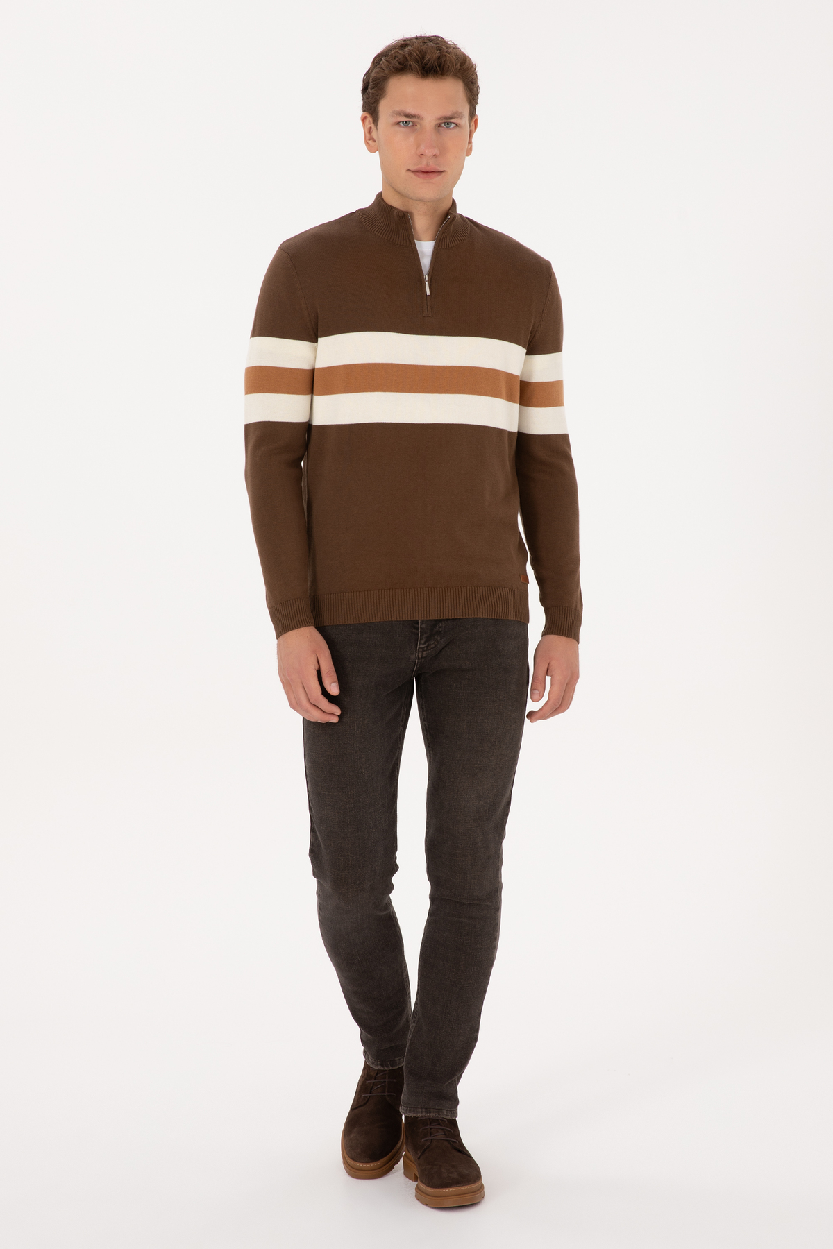 خرید اینترنتی پلیور مردانه قهوهای نیم زیپ سایز معمولی 50315034-VR029 برند یو اس پولو U.S. Polo Assn. اورجینال از U.S. Polo Assn. نمایندگی و فروشگاه معتبر ترکیه