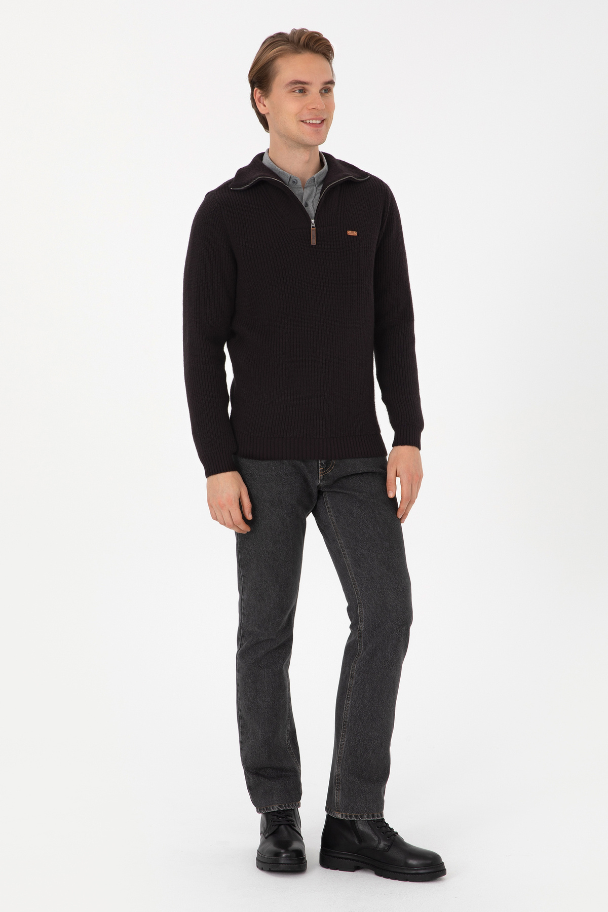 خرید اینترنتی پلیور مردانه نیم زیپ مشکی سایز معمولی 50317171-VR046 برند یو اس پولو U.S. Polo Assn. اورجینال از U.S. Polo Assn. نمایندگی ترکیه
