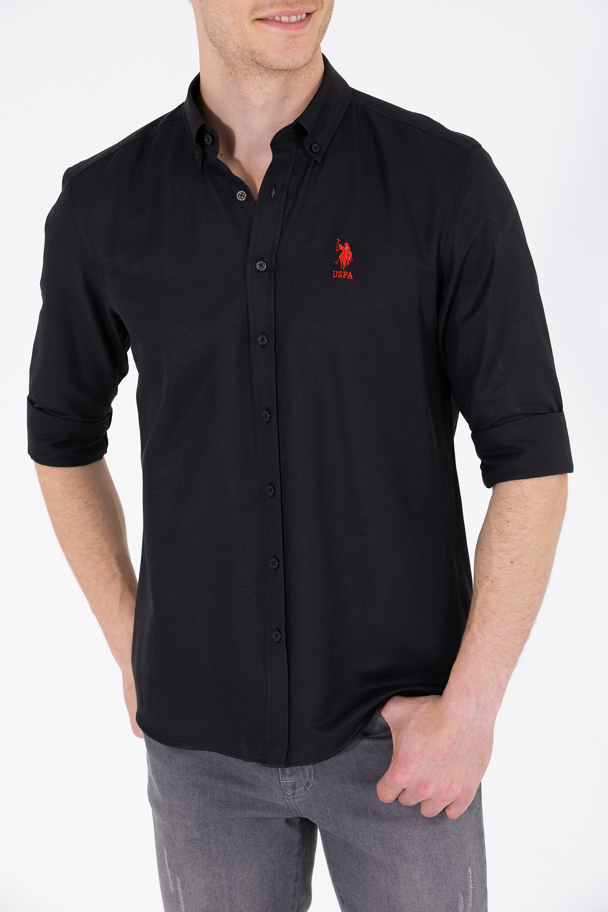 خرید اینترنتی پیراهن مردانه آستین بلند مشکی ساده ۵۰۲۶۲۹۳۴-VR۰۴۶ برند یو اس پولو U.S. Polo Assn. اورجینال از ÇAĞDAŞ GRUP نمایندگی و فروشگاه معتبر ترکیه