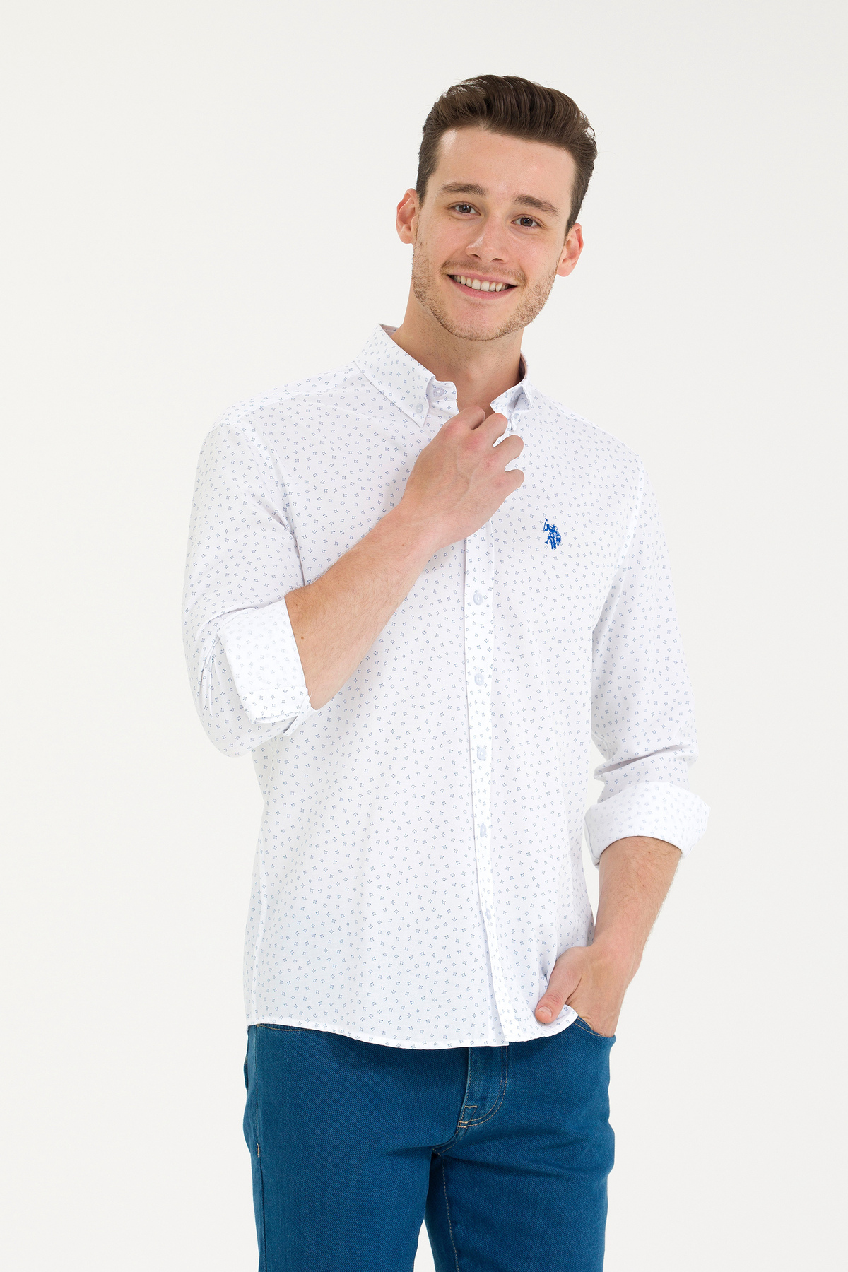 https://www.trendyol.com/u-s-polo-assn/erkek-saks-baskili-beyaz-gomlek-50265620-vr045-p-839168746 |
