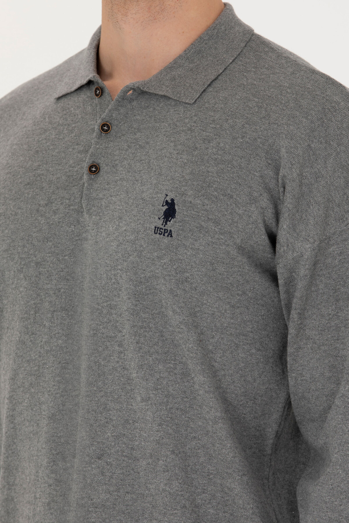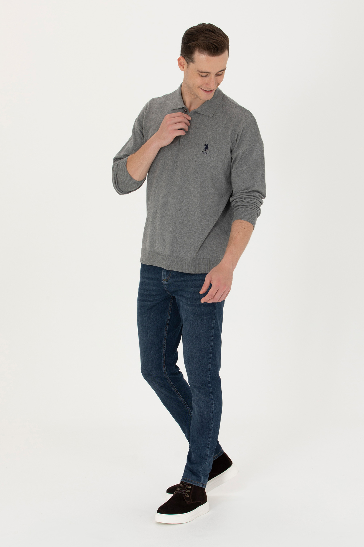 خرید اینترنتی پلیور مردانه خاکستری ملانژ ساده 50275845-VR086 برند یو اس پولو U.S. Polo Assn. اورجینال از Walnut Style نمایندگی ترکیه