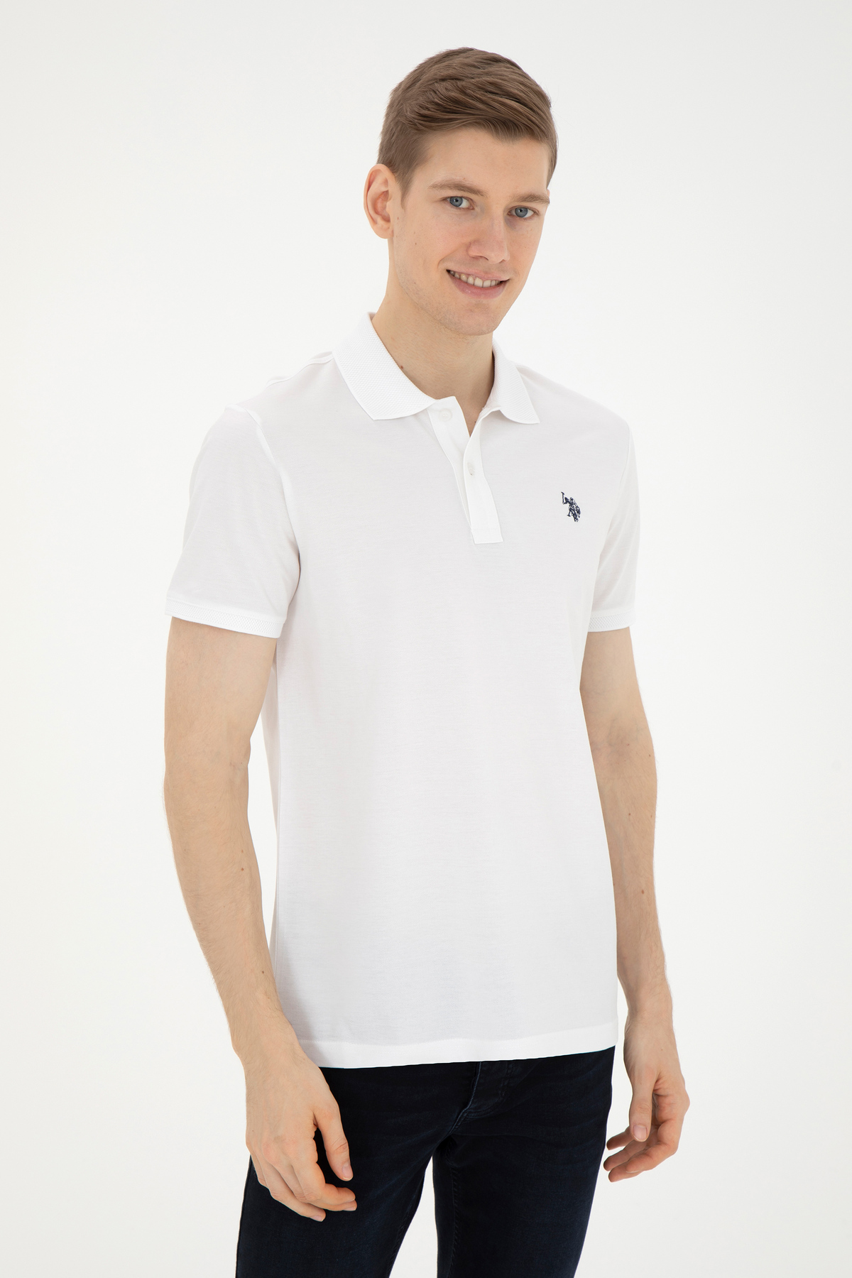 خرید اینترنتی پولو شرت مردانه یقه دار معمولی سفید 50281840-VR013 برند یو اس پولو U.S. Polo Assn. اورجینال از kaplann store نمایندگی ترکیه
