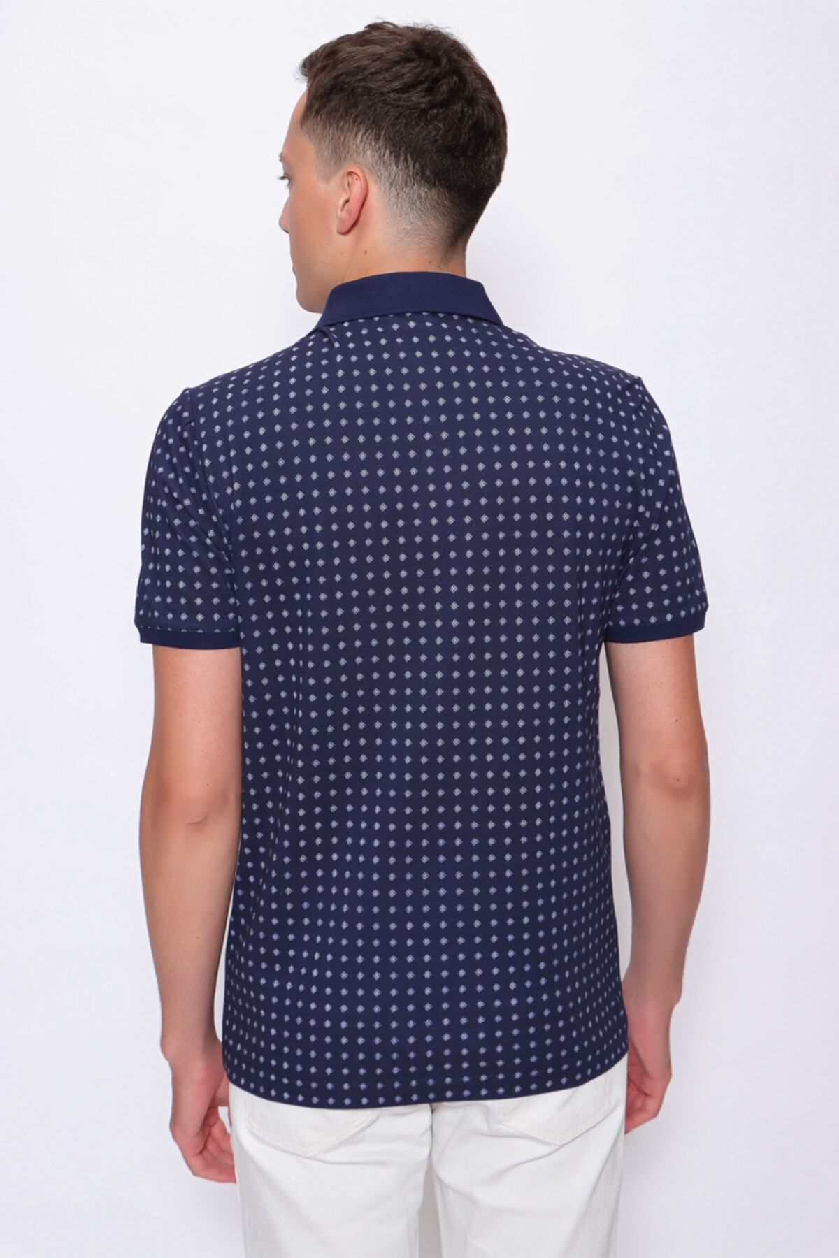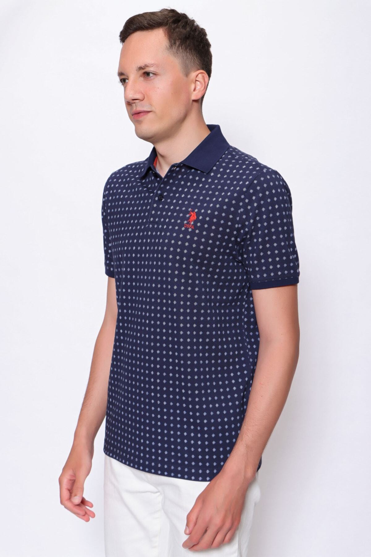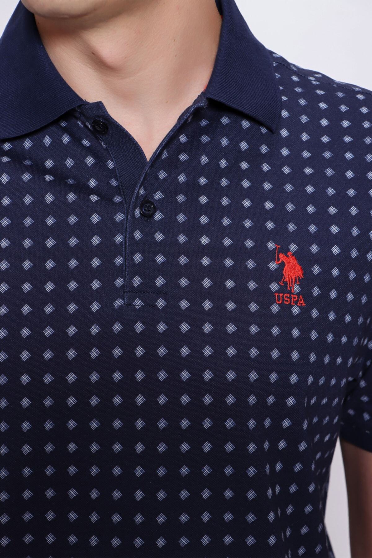 خرید اینترنتی تی‌شرت یقه پولو طرح هندسی برش معمولی با برش آرام و فیت سرمه‌ای برند یو اس پولو U.S. Polo Assn. اورجینال از Walnut Style نمایندگی ترکیه