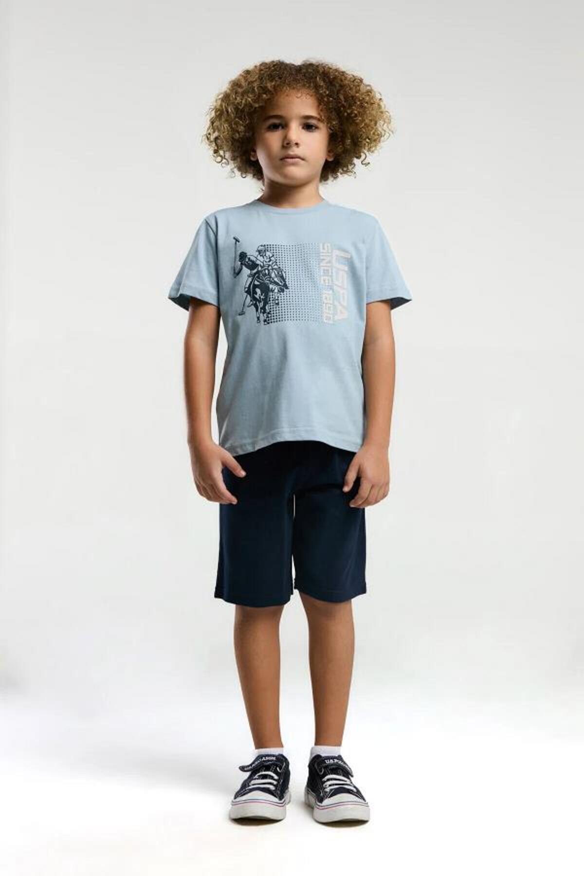 ست تی شرت شلوارک برمودای مردانه پولو US2025-4 مدل پایه پسرانه یو اس پولو فاق نرمال آستین استاندارد طرح دار | U.S. Polo Assn. P-000000000000010420