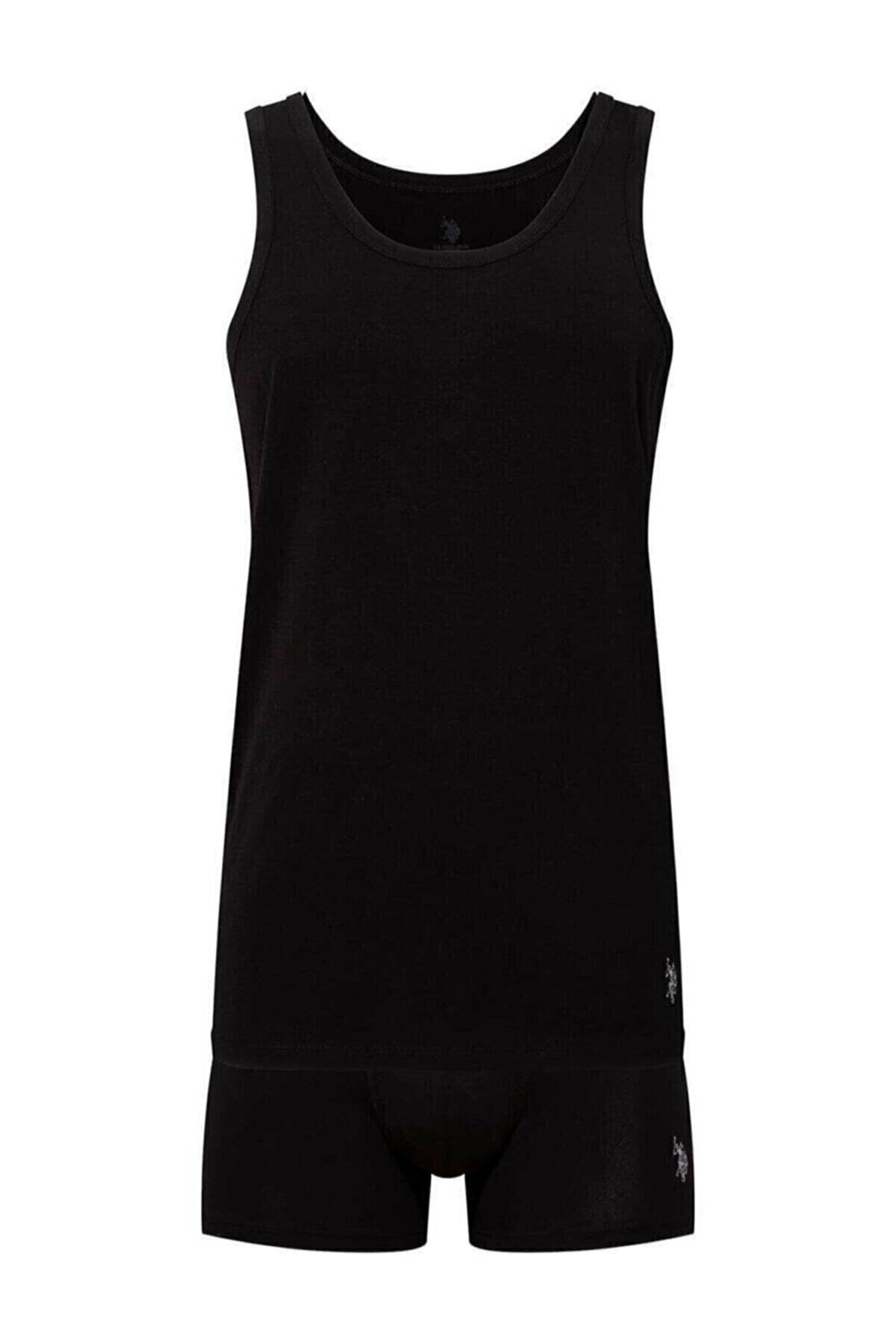 خرید اینترنتی ست لباس عروس دو تکه جعبهای مردانه تاپ و شورت باکسر مشکی مودال برند یو اس پولو U.S. Polo Assn. اورجینال از Slendos نمایندگی و فروشگاه معتبر ترکیه
