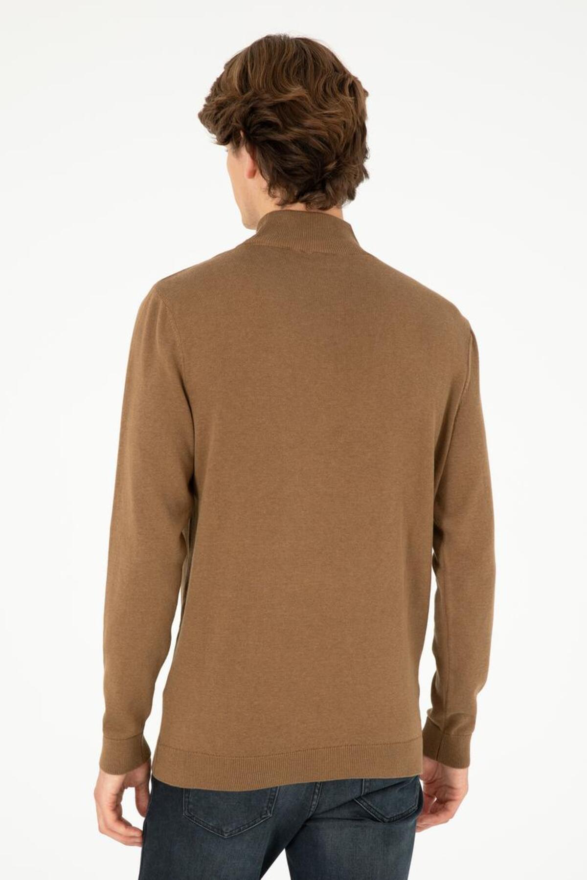 خرید اینترنتی پلیور مردانه یقه اسکی اسلیم فیت، خاکی، ملانژ، طرح ساده TEKSPOR192094.7 برند یو اس پولو U.S. Polo Assn. اورجینال از Tek Spor Giyim نمایندگی ترکیه