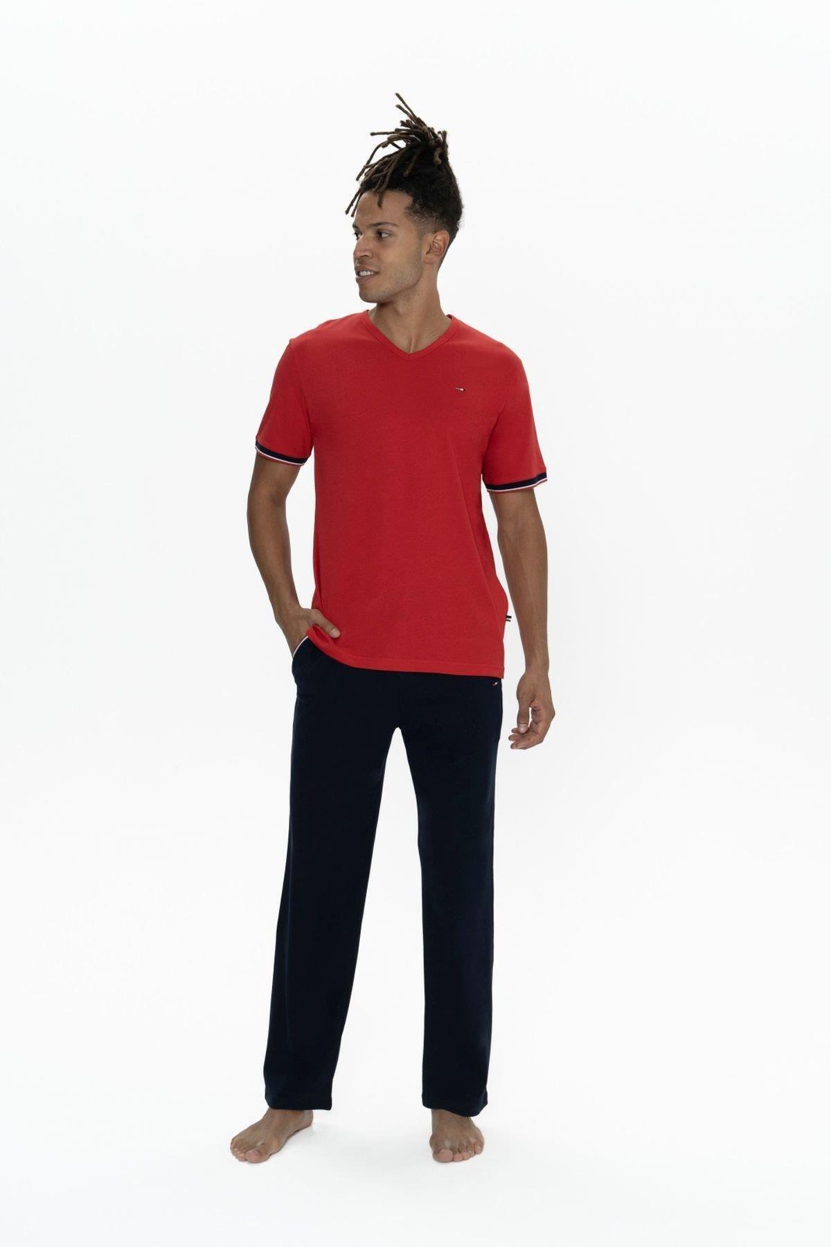 خرید اینترنتی ست لباس خواب مردانه سایز بزرگ آستین کوتاه قرمز یقه هفت برند یو اس پولو U.S. Polo Assn. اورجینال از POLA TREND نمایندگی ترکیه