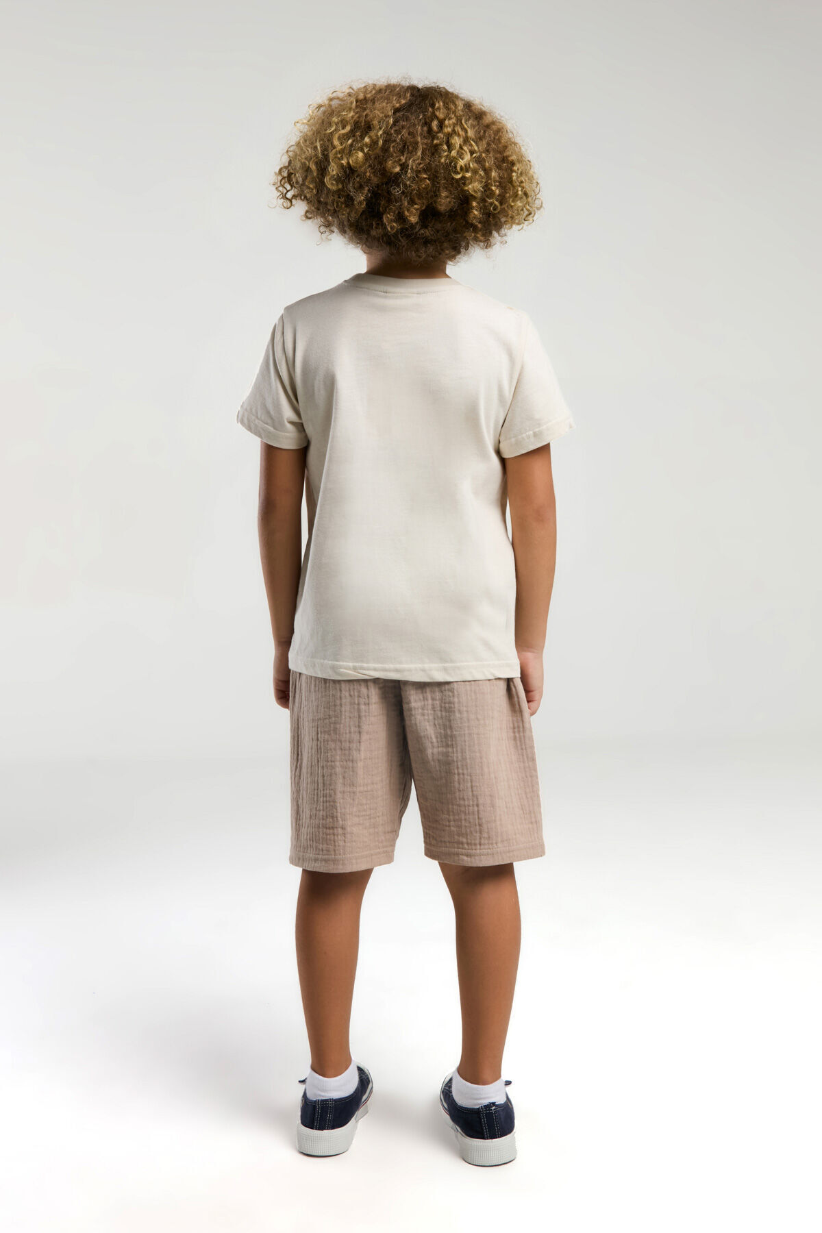 – این کت و شلوار برمودای پسرانه، با رنگ کرم خود، ظرافت ماههای تابستان را منعکس میکند و ظاهری هماهنگ با رنگهای بژ ارائه میدهد.