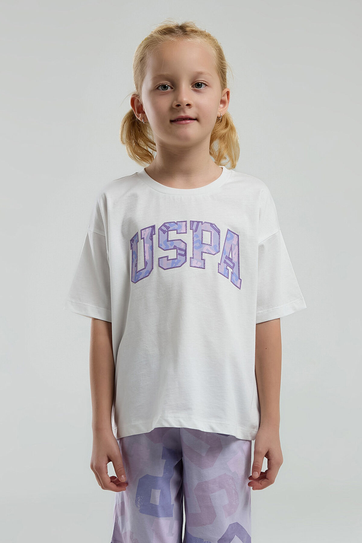 ست بالاتنه و پاین تنه دخترانه یو اس پولو فاق نرمال آستین استاندارد طرح دار | U.S. Polo Assn. US2084-C