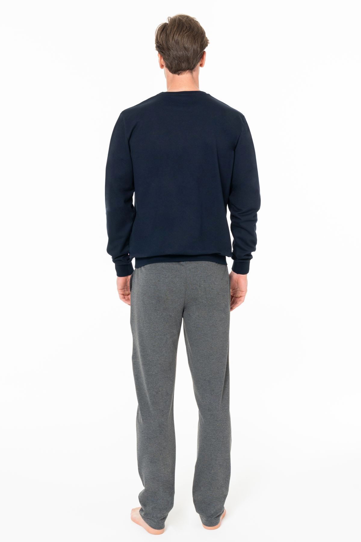 خرید اینترنتی ست لباس خواب مردانه یقه گرد آستین بلند سرمهای مدل 18925B برند یو اس پولو U.S. Polo Assn. اورجینال از POLA TREND نمایندگی ترکیه