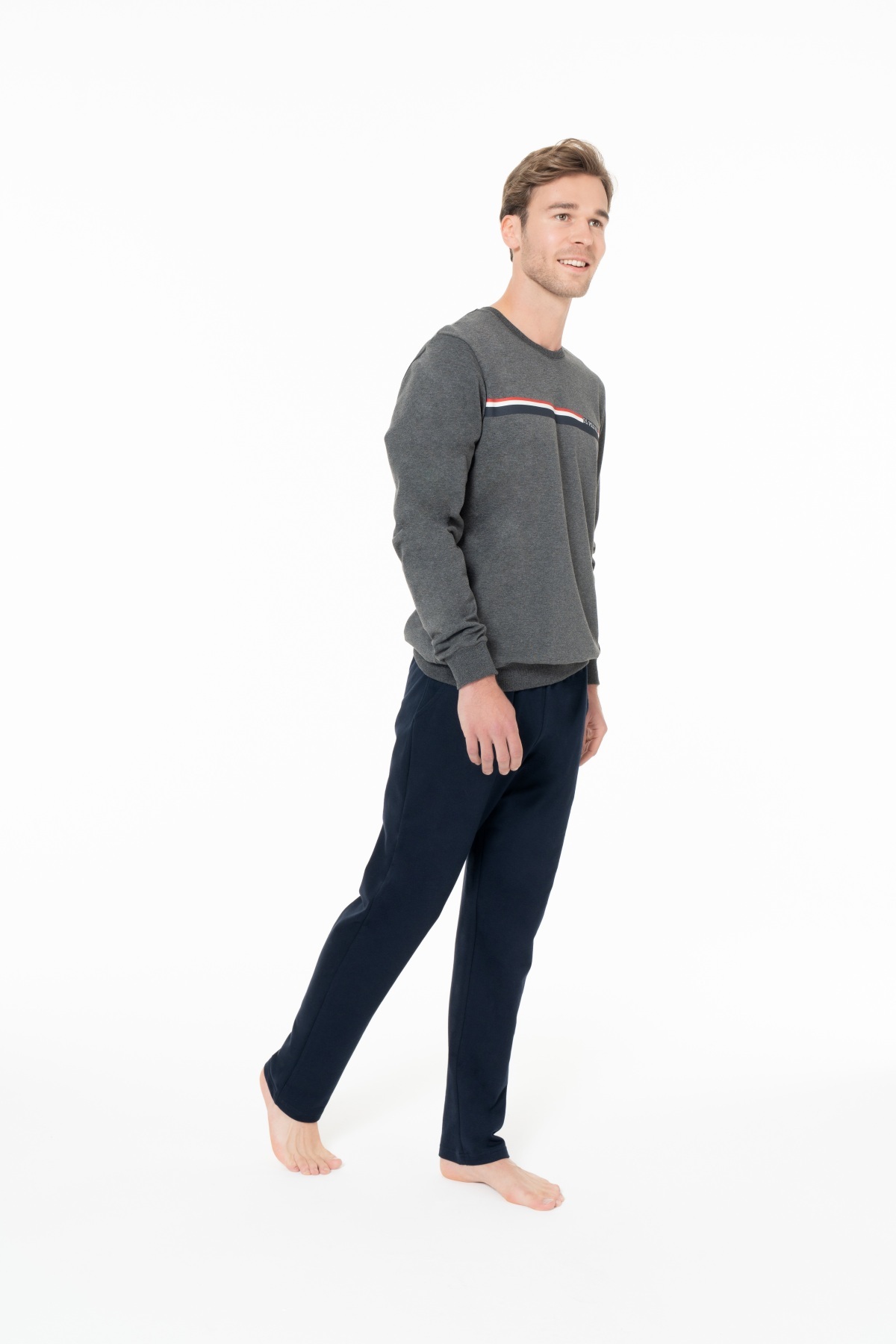 خرید اینترنتی ست لباس خواب مردانه یقه گرد آستین بلند، رنگ ملانژ آنتراسیت، کد 18925B برند یو اس پولو U.S. Polo Assn. اورجینال از POLA TREND نمایندگی ترکیه