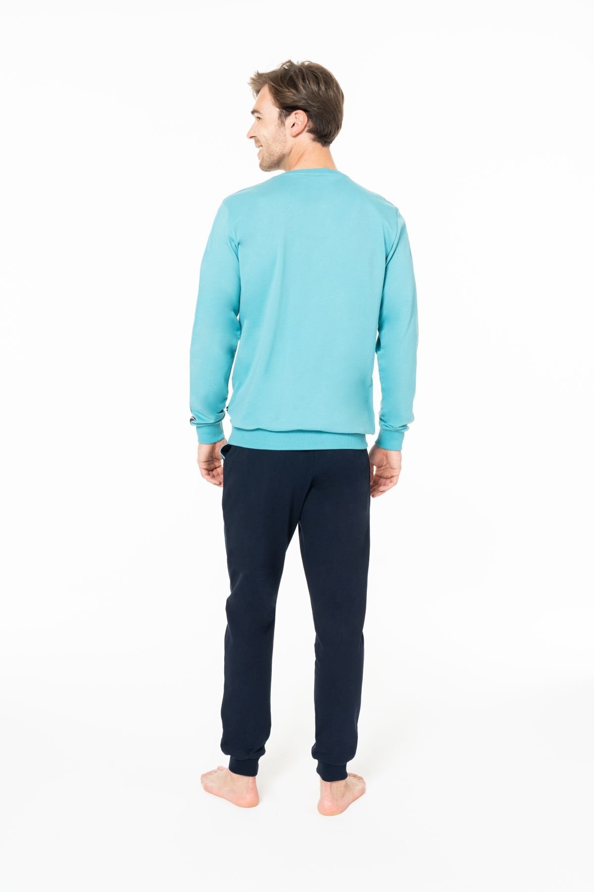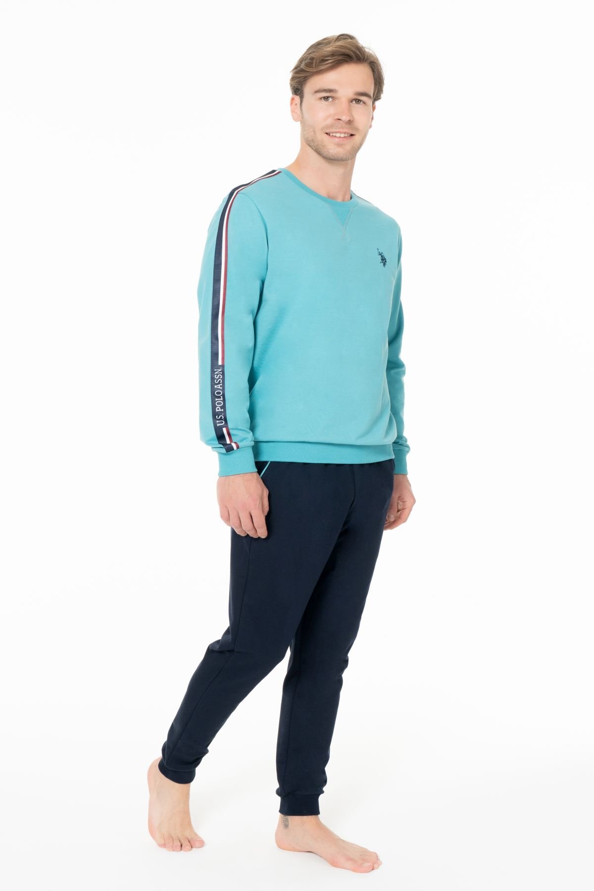 خرید اینترنتی ست لباس خواب مردانه یقه گرد آستین بلند S26942 با لبه نواری برند یو اس پولو U.S. Polo Assn. اورجینال از TREND MALL نمایندگی ترکیه