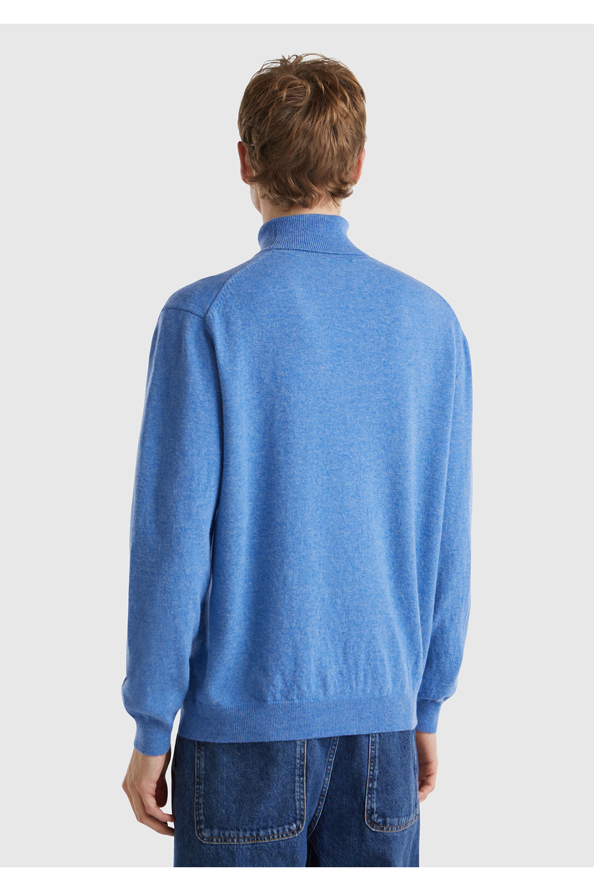 خرید اینترنتی ژاکت یقه اسکی مردانه آبی ملانژ ۱۰۰٪ مرینوس برند یونایتد کالرز آو بنتون United Colors of Benetton اورجینال از Tacreo نمایندگی ترکیه