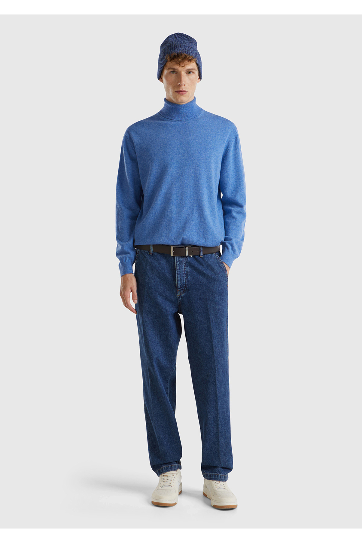 خرید اینترنتی ژاکت یقه اسکی مردانه آبی ملانژ ۱۰۰٪ مرینوس برند یونایتد کالرز آو بنتون United Colors of Benetton اورجینال از Tacreo نمایندگی و فروشگاه معتبر ترکیه